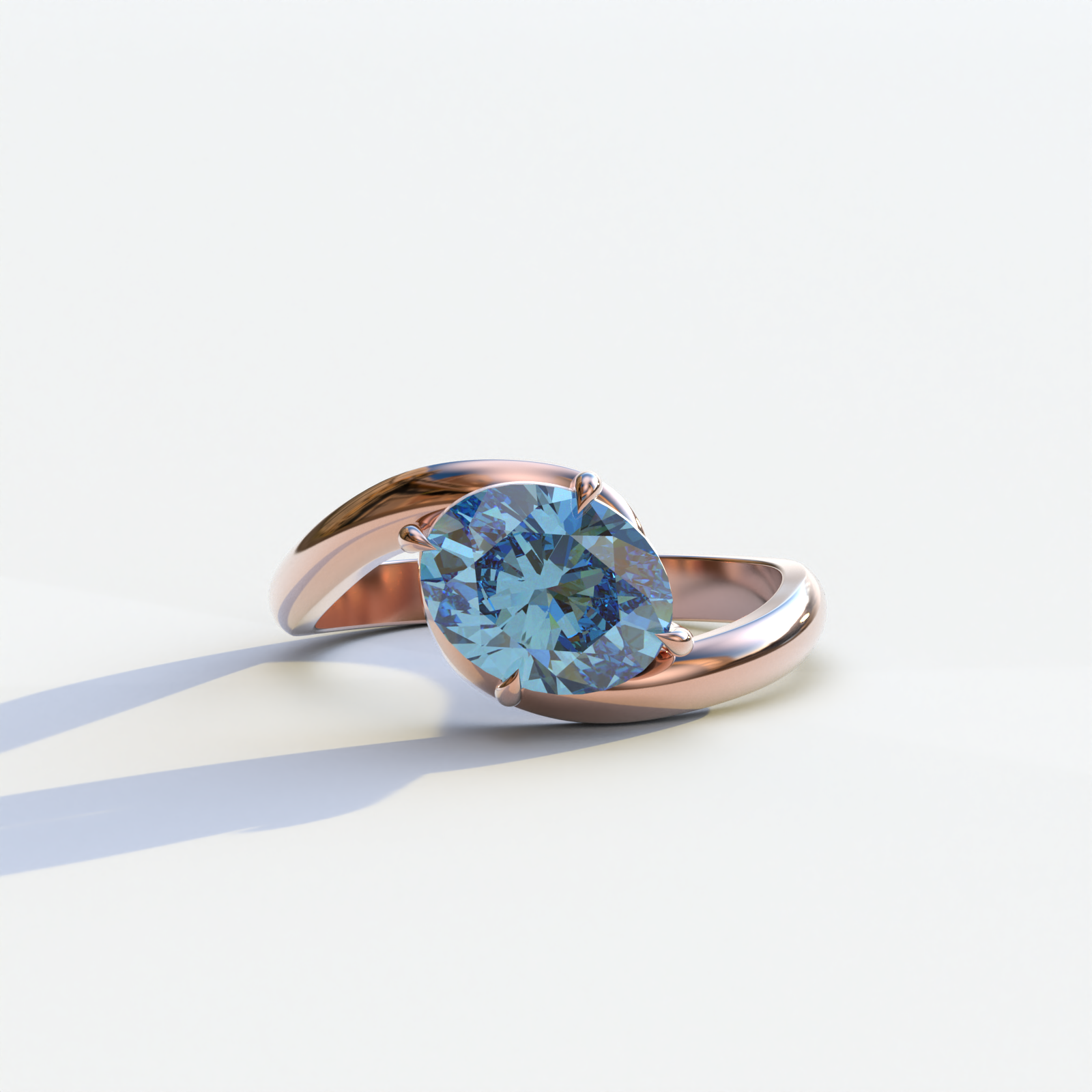 2 Carat Fancy Vivid Blue Oval Cut Lab Diamond Ring - Estella