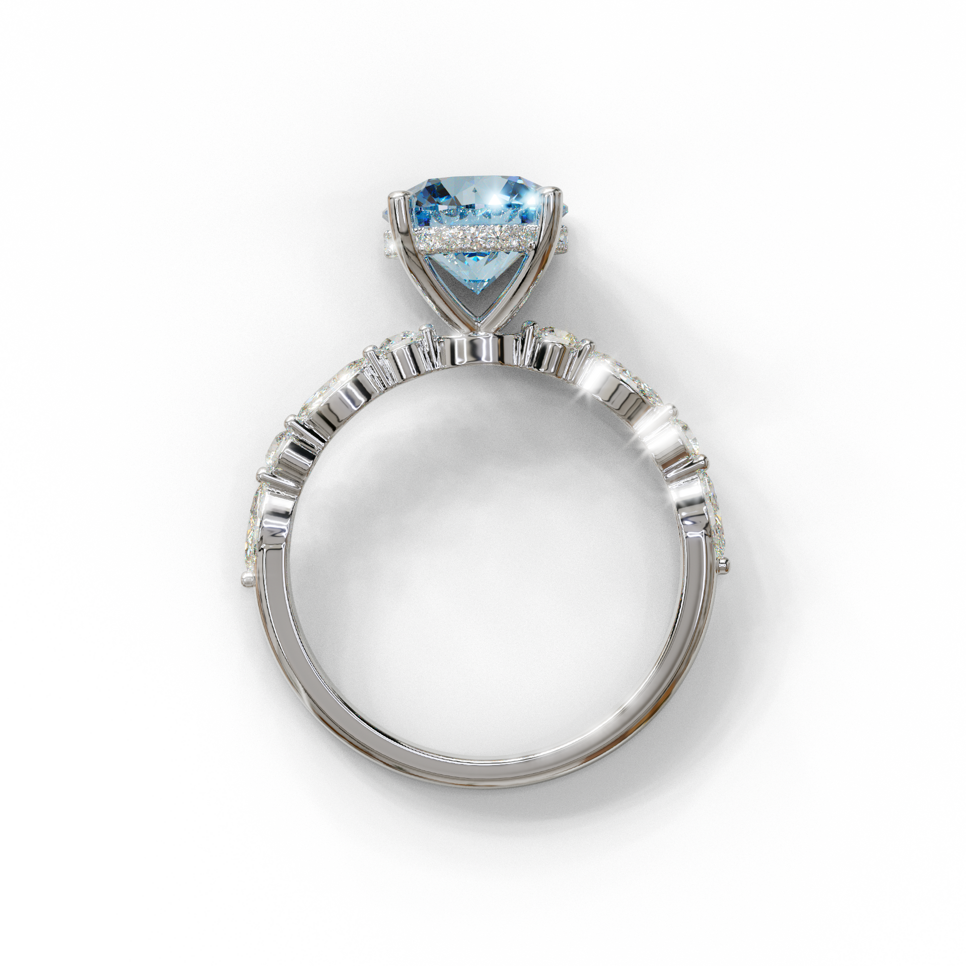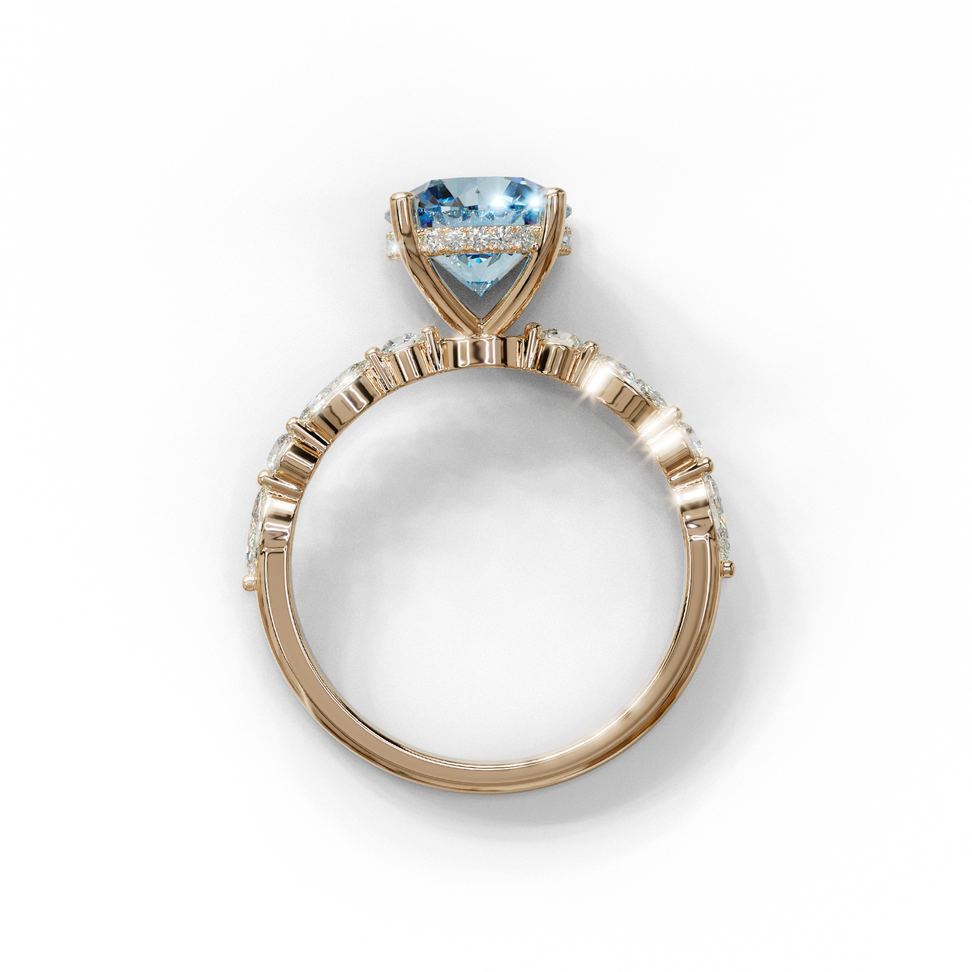 2 Carat Blue Round Cut Hidden Halo & Pave Set Lab Diamond Ring - Pure Origin