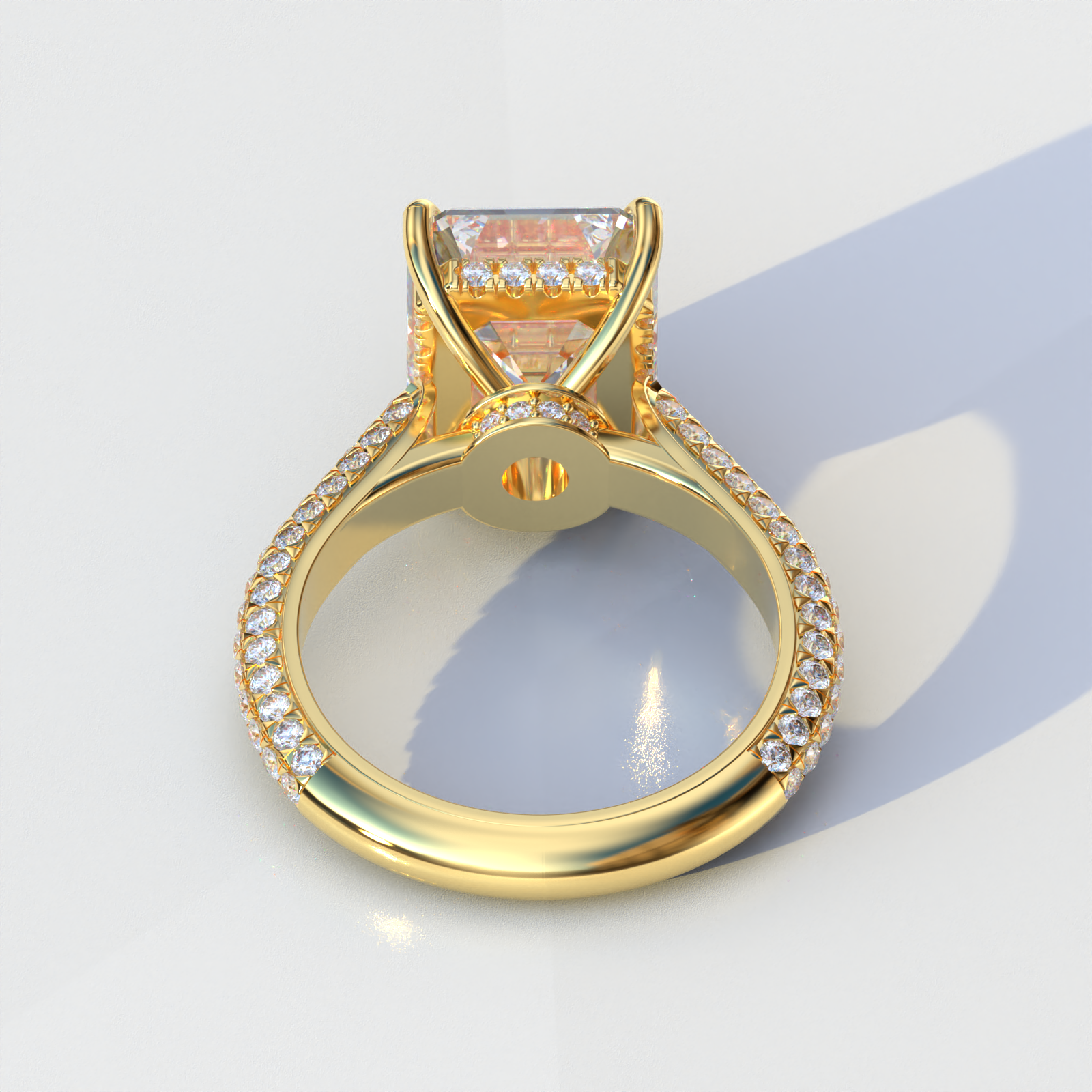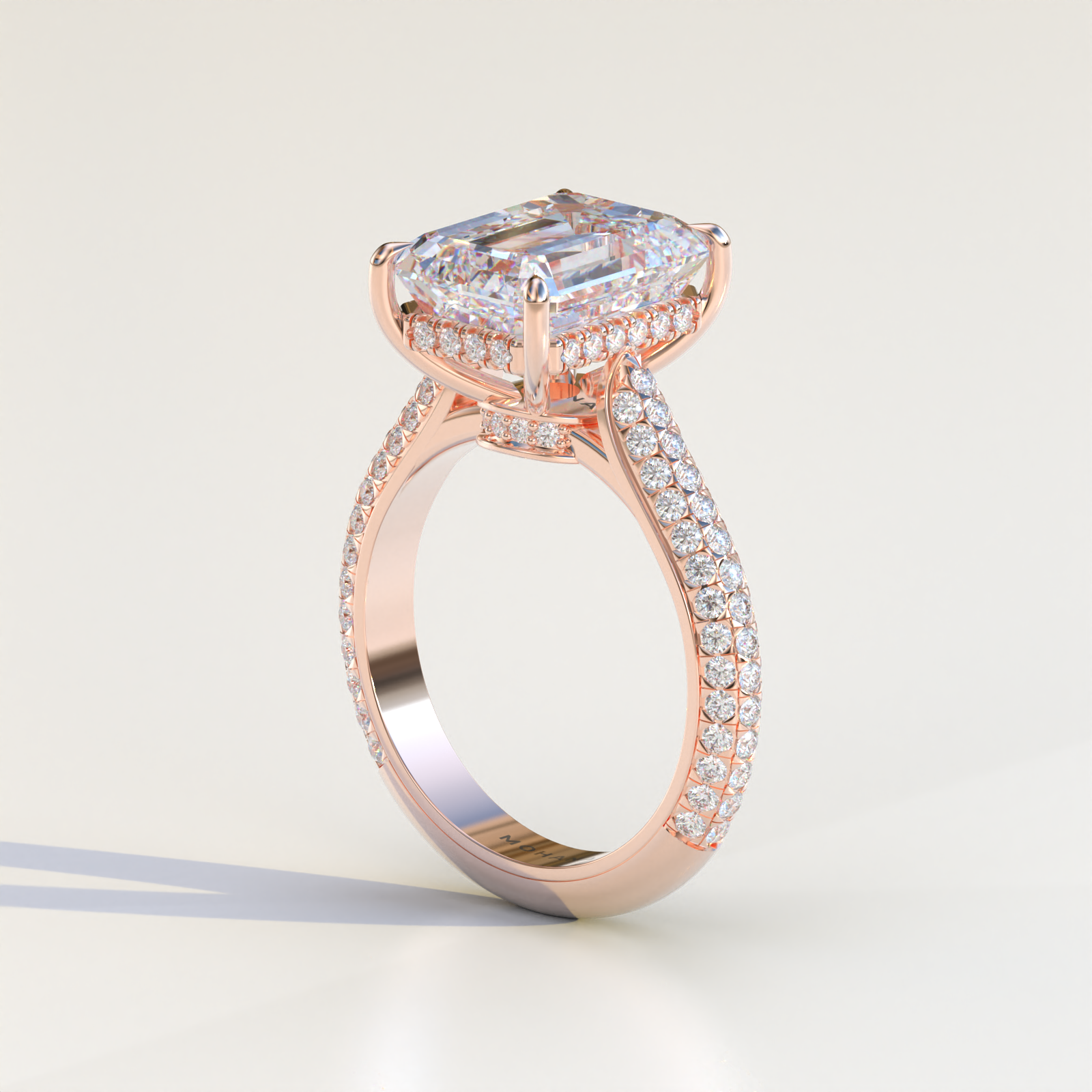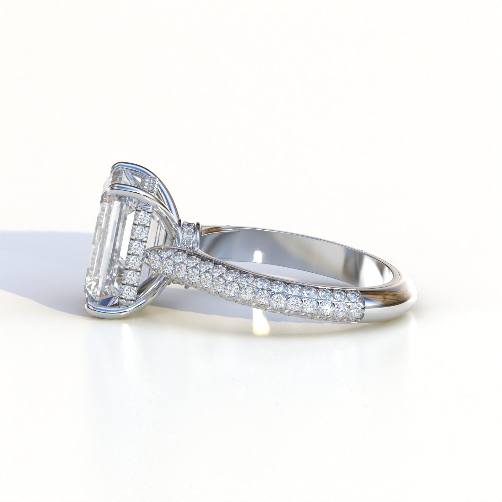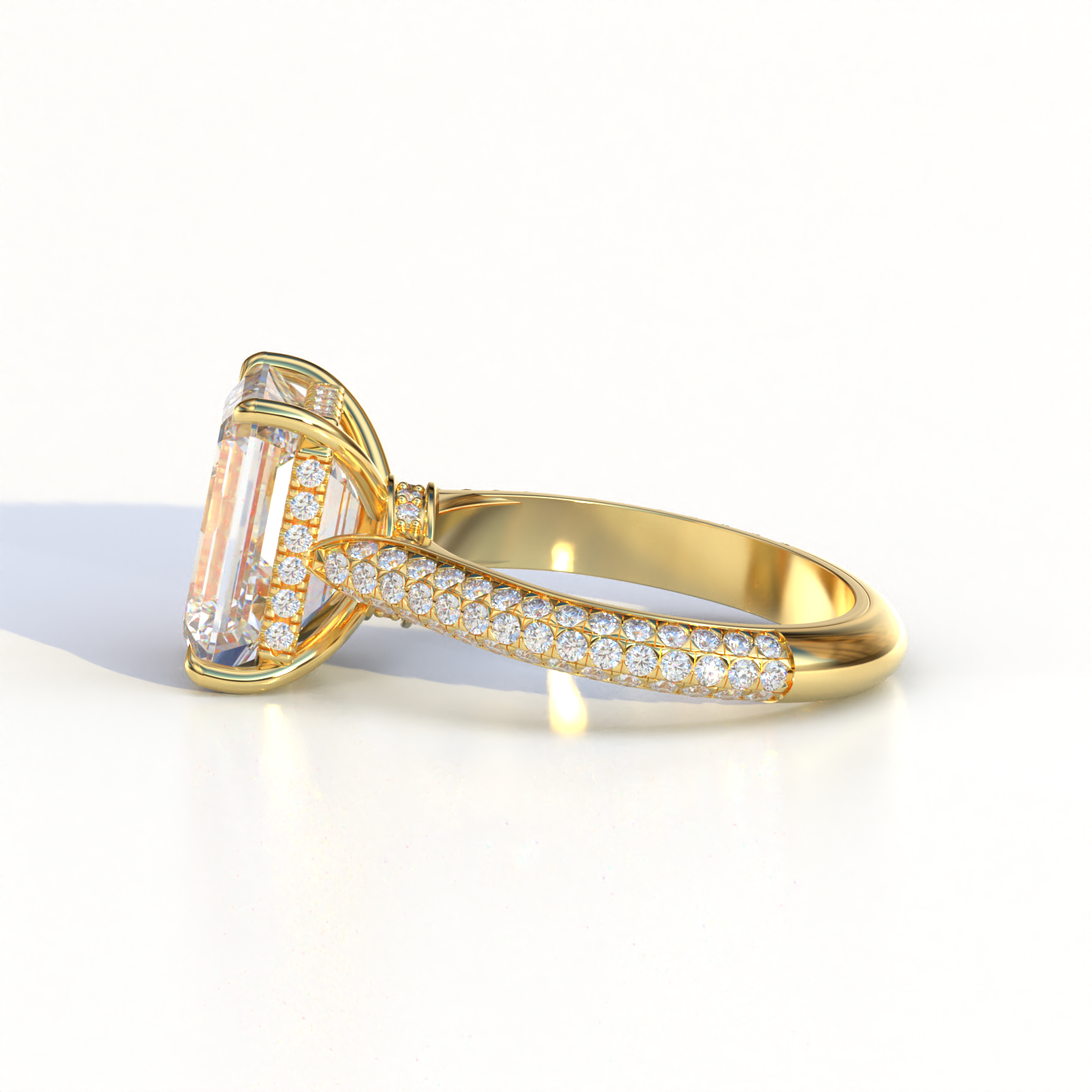 3 Carat Emerald Cut Hidden Halo & Pave Set Lab Diamond Ring - Emme