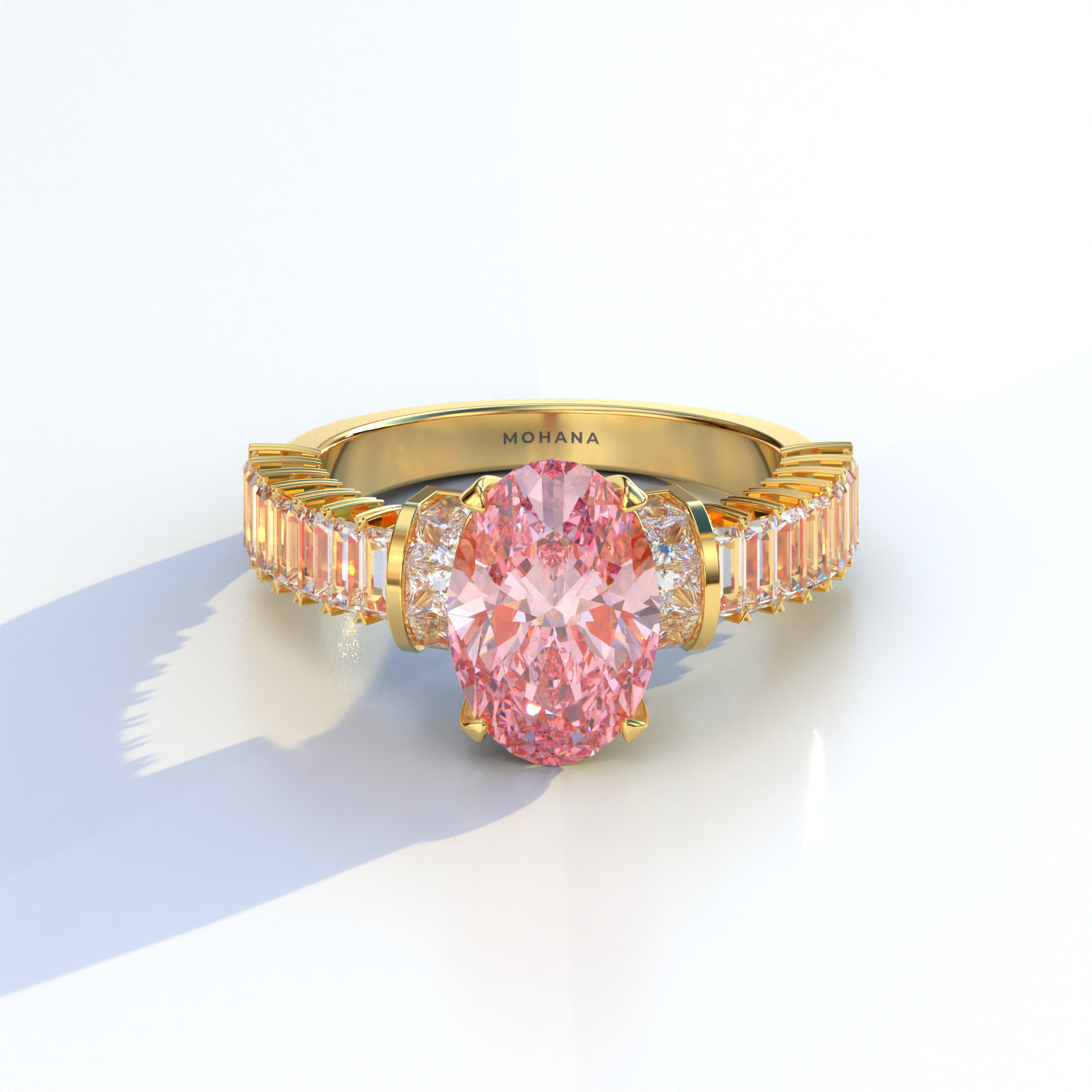 3 Carat Pink Lab Diamond Oval Cut Engagement Ring - Venice