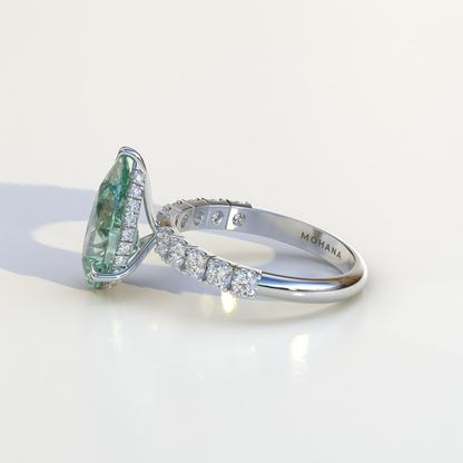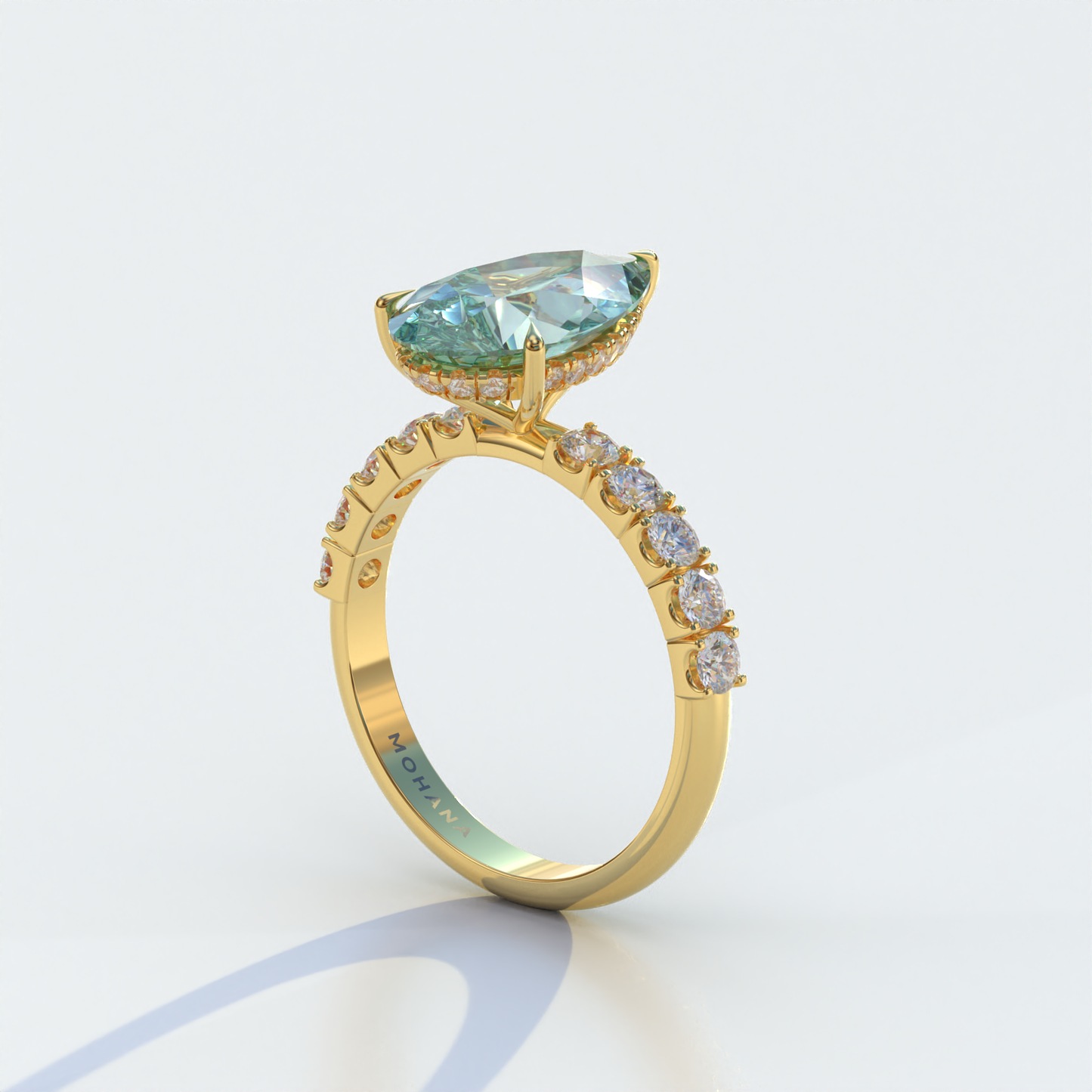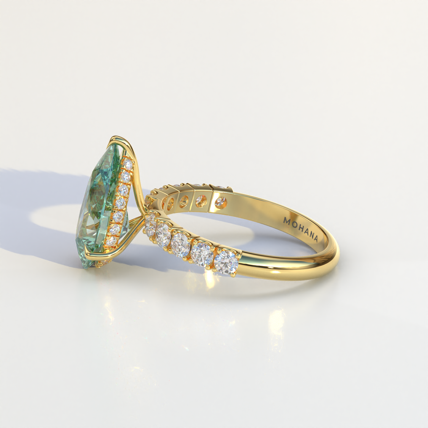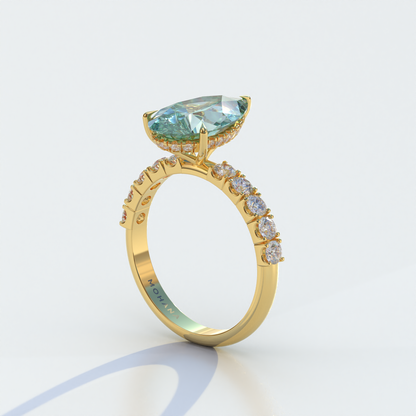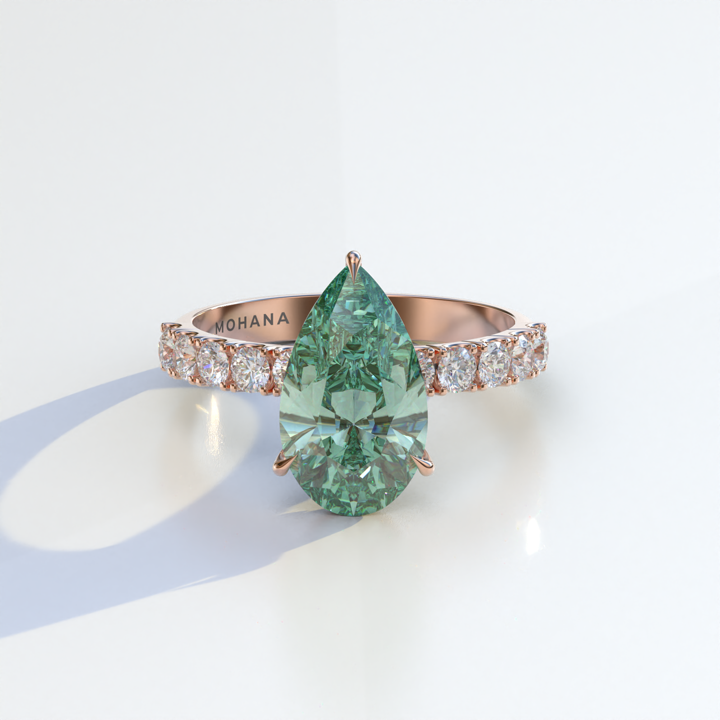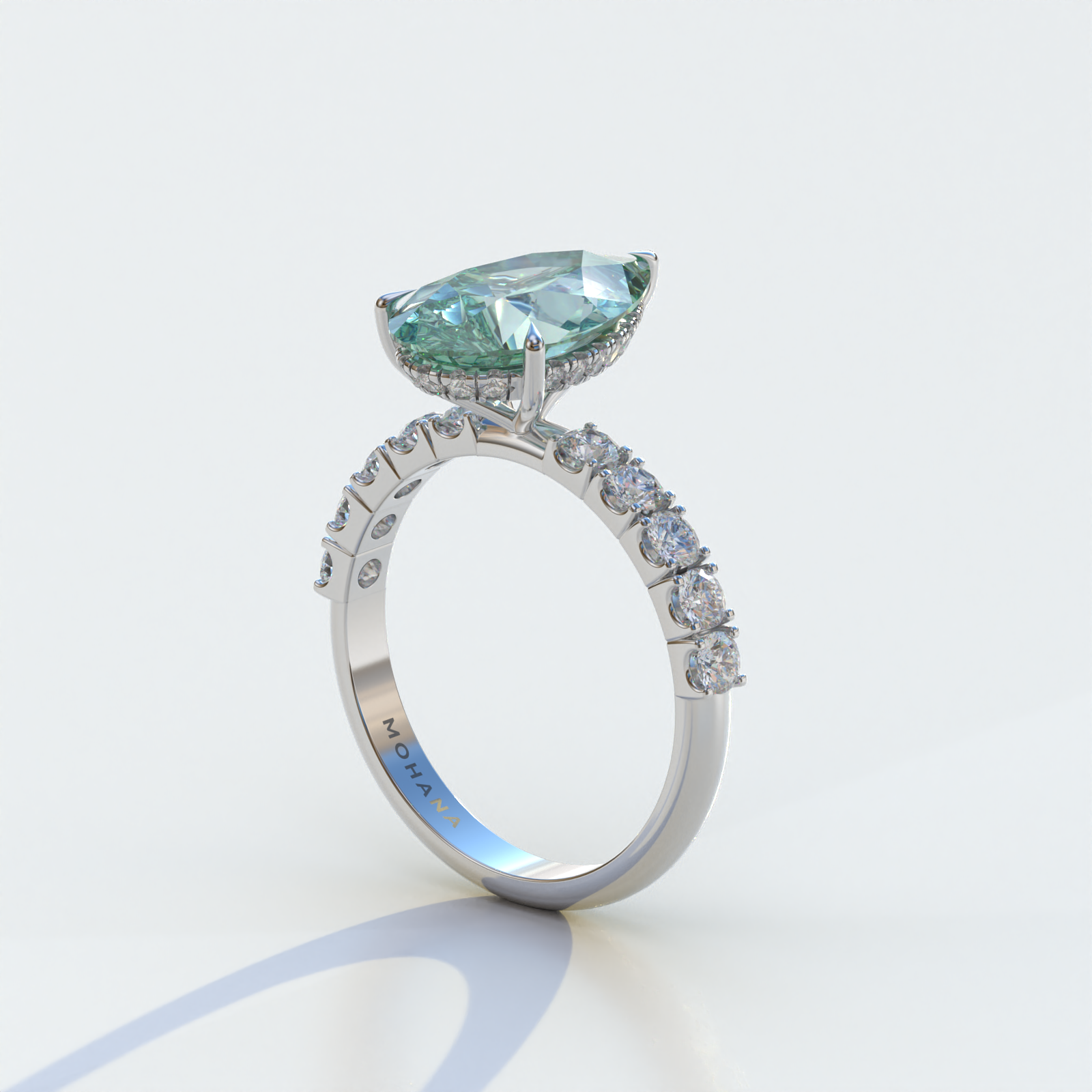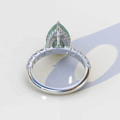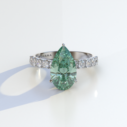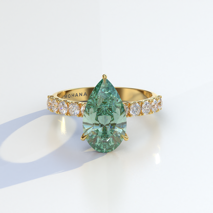 4 Carat Green Pear Shaped Hidden Halo Eternity Lab Diamond Ring - Feesia