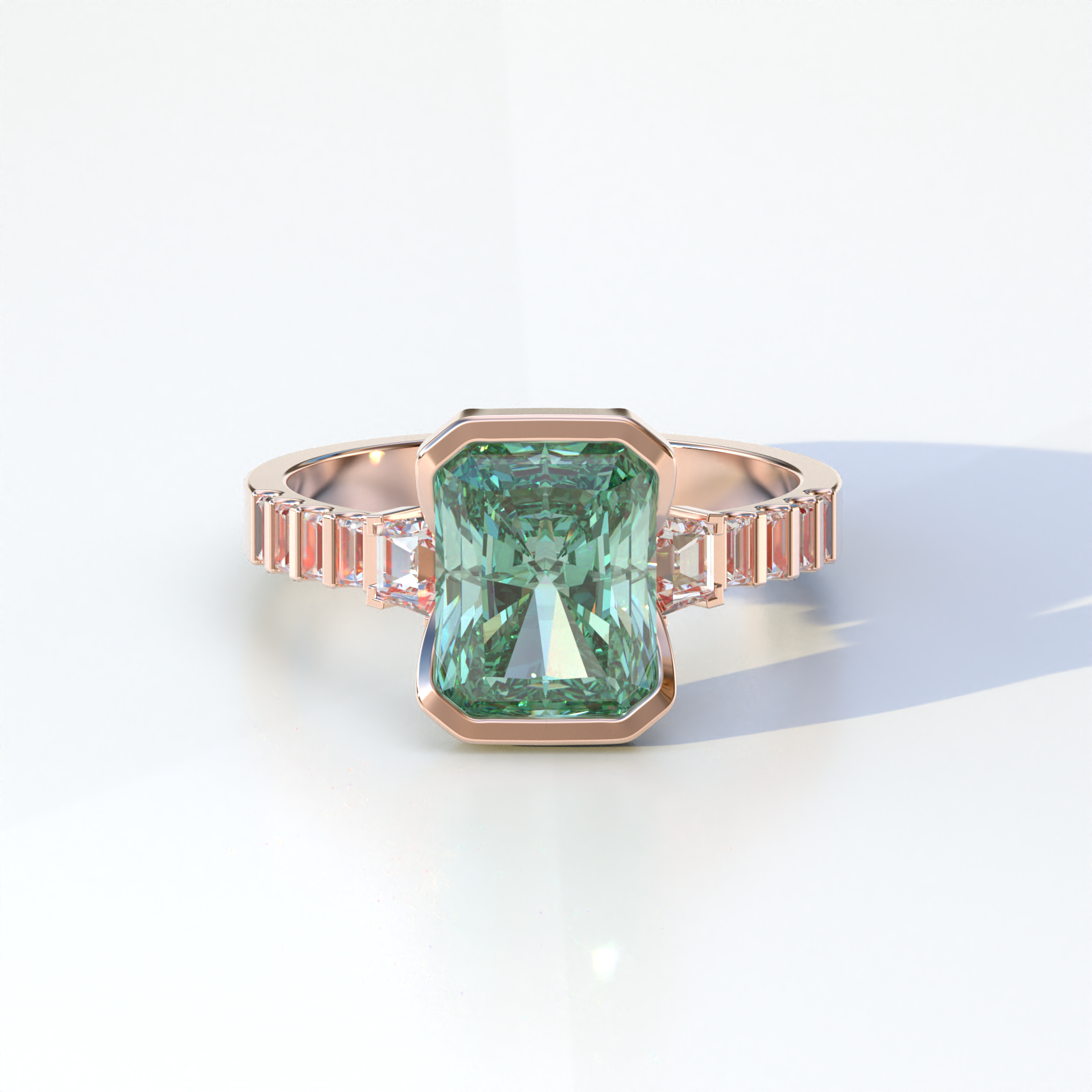 3 Carat Green Radiant Cut Three Stone Lab Diamond Engagement Ring - Adiamor
