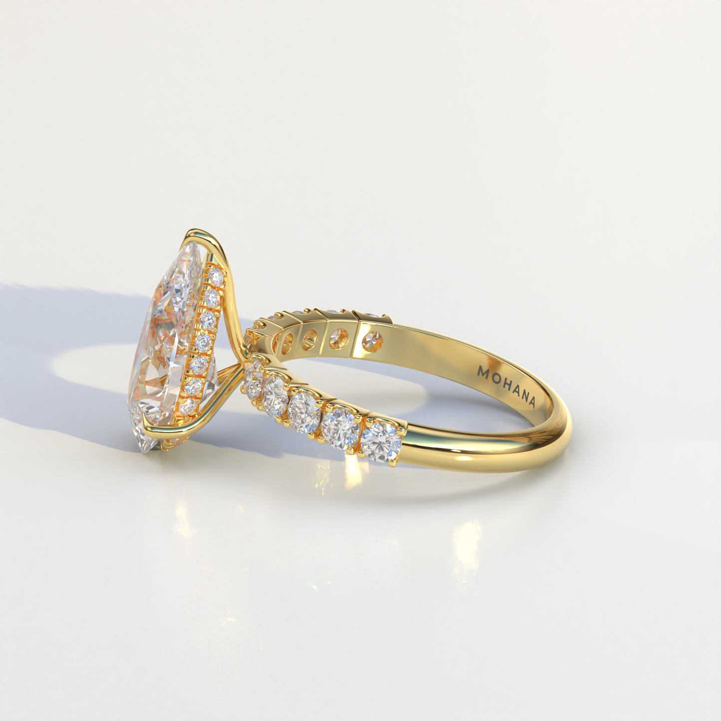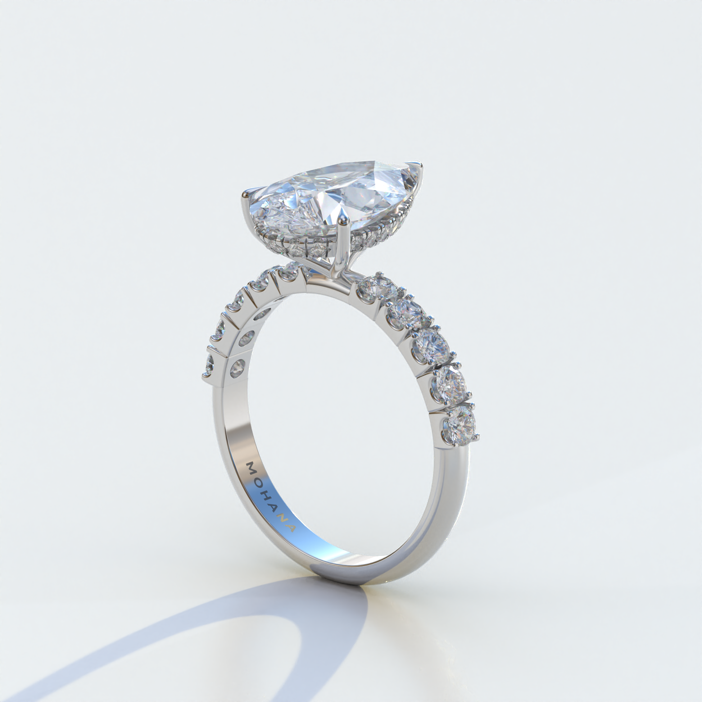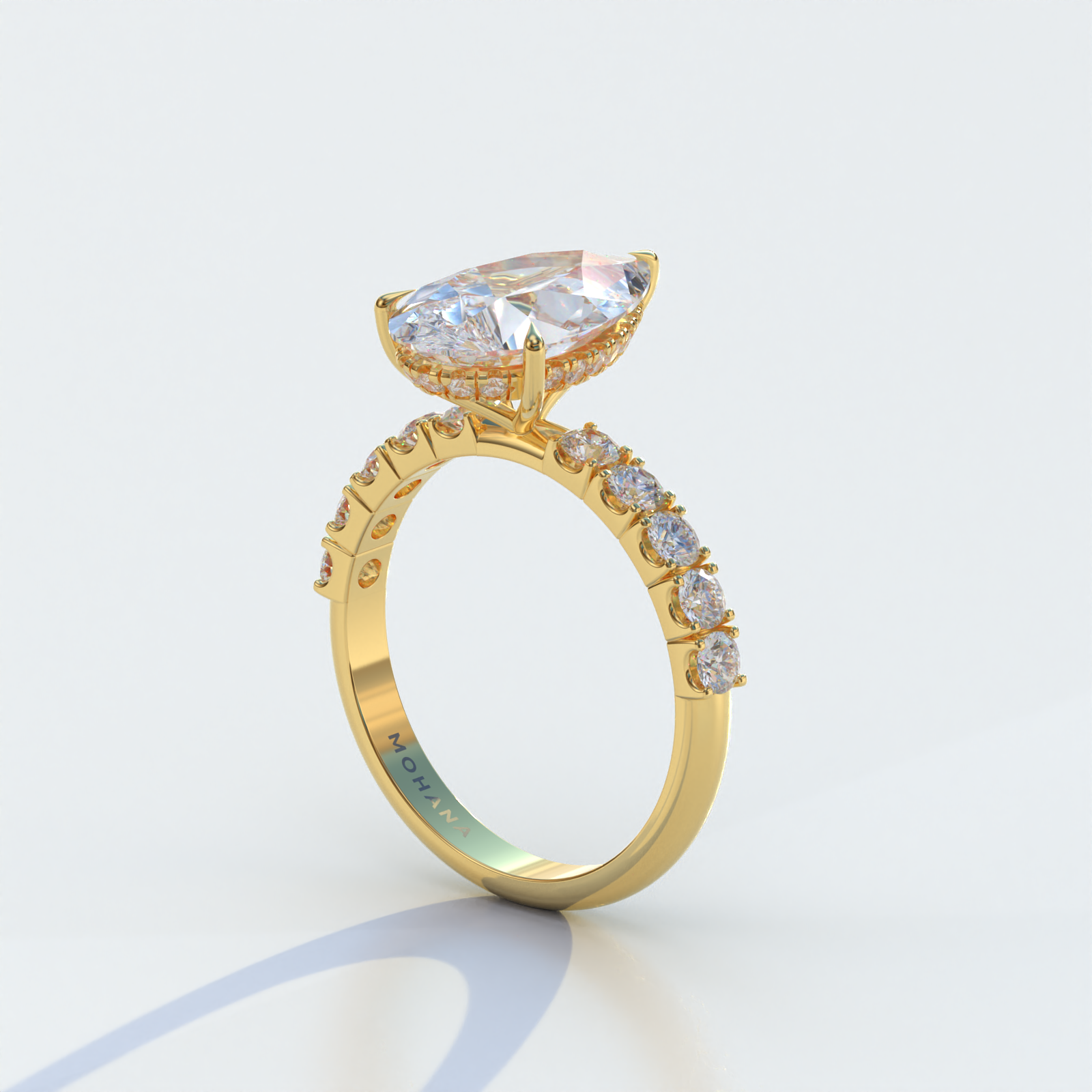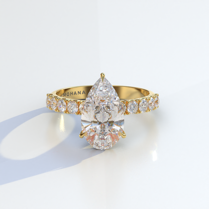 4 Carat Pear Shaped Hidden Halo Lab Diamond Engagement Ring - Feesia