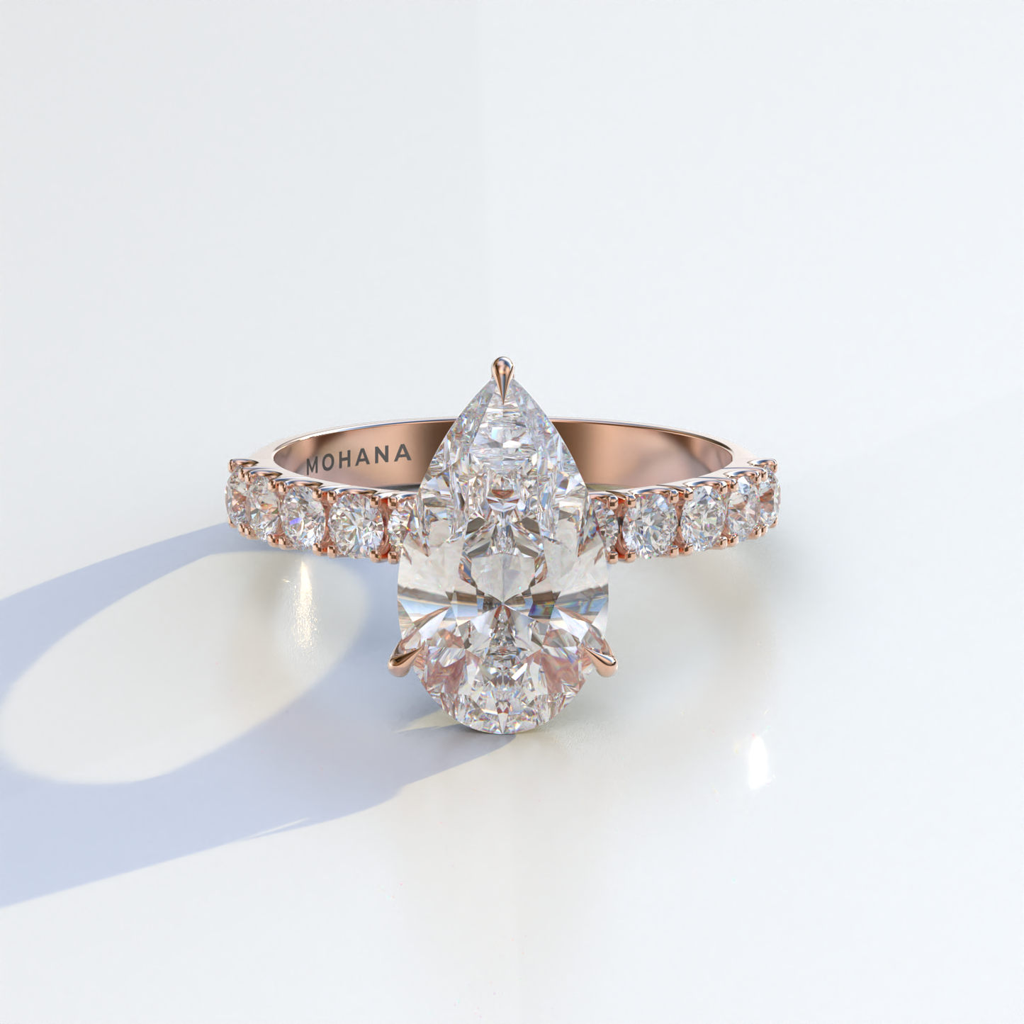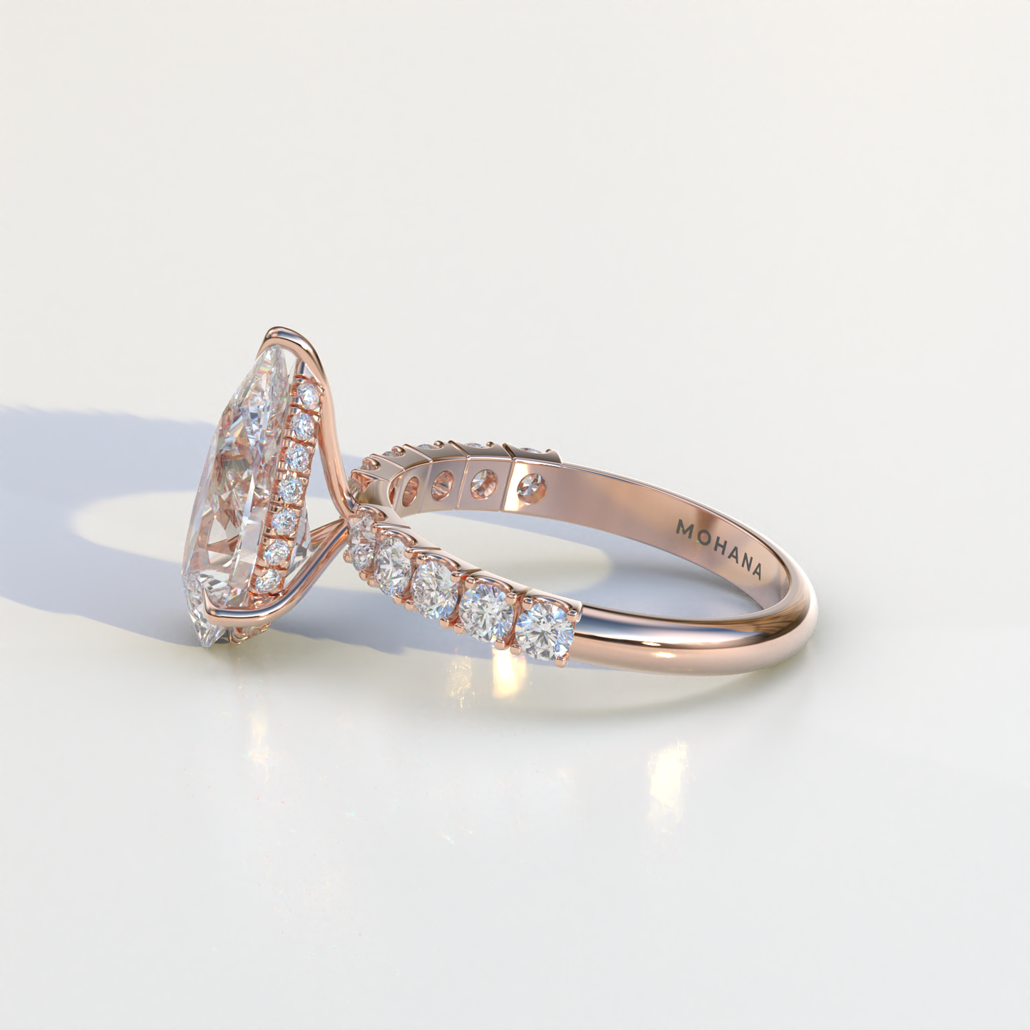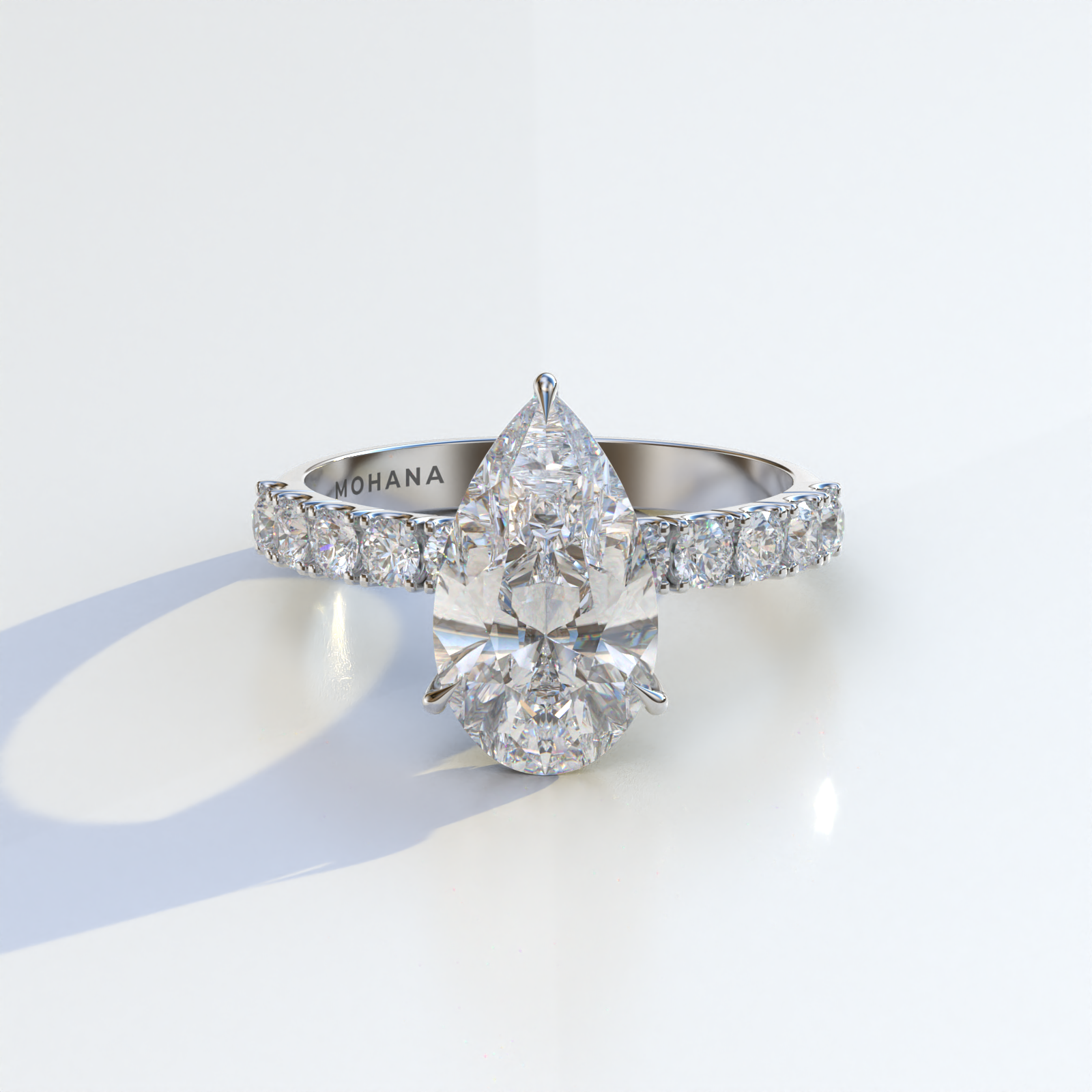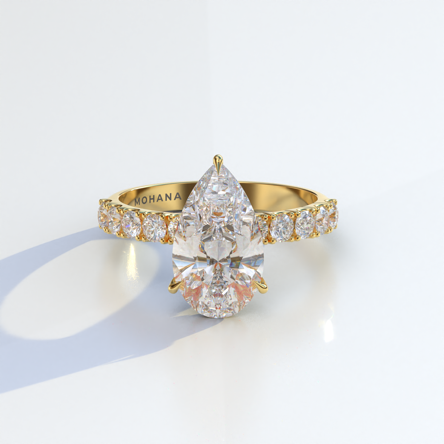 4 Carat Pear Shaped Hidden Halo Lab Diamond Engagement Ring - Feesia