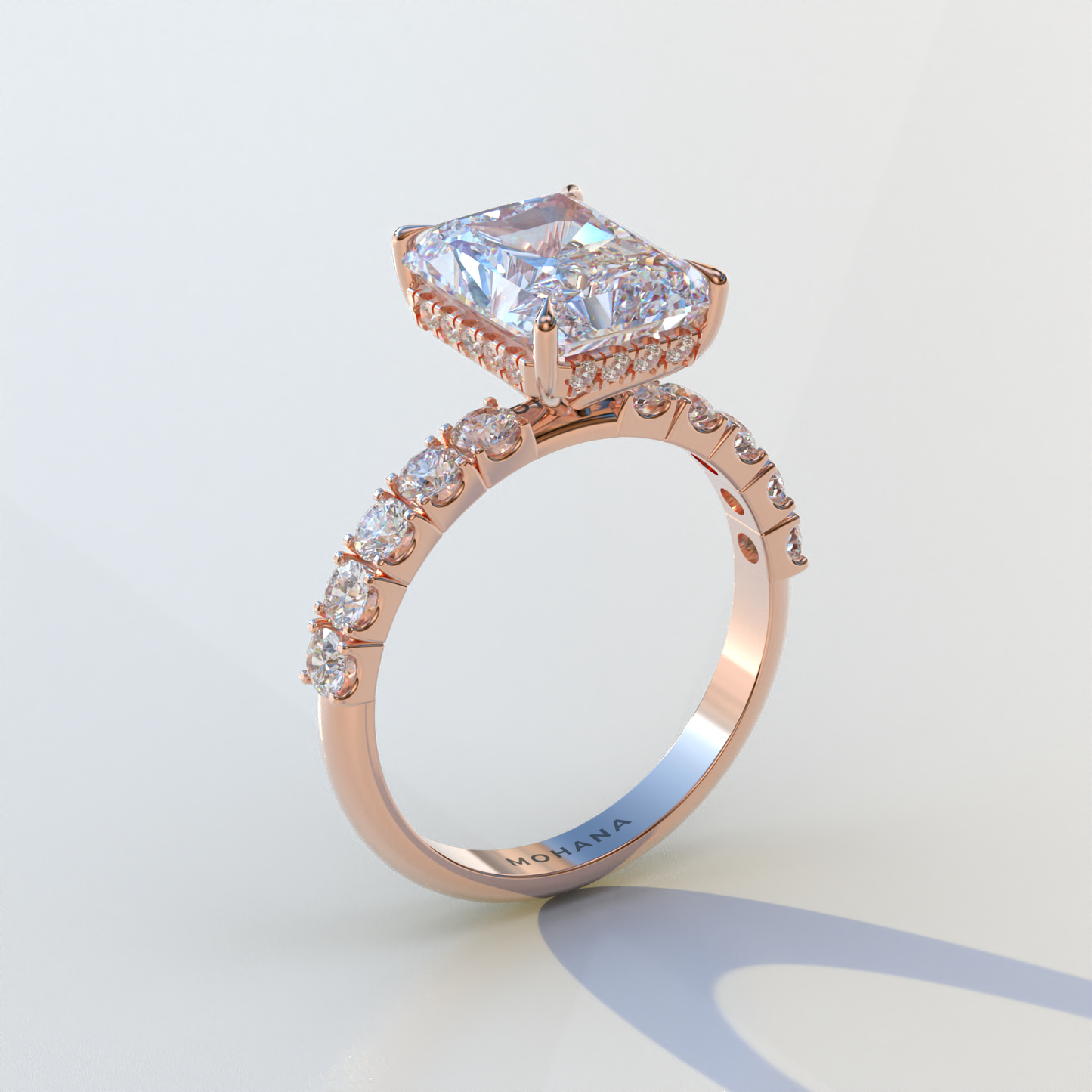 4 Carat Radiant Cut Hidden Halo Eternity Lab Diamond Ring - Lace Bridge