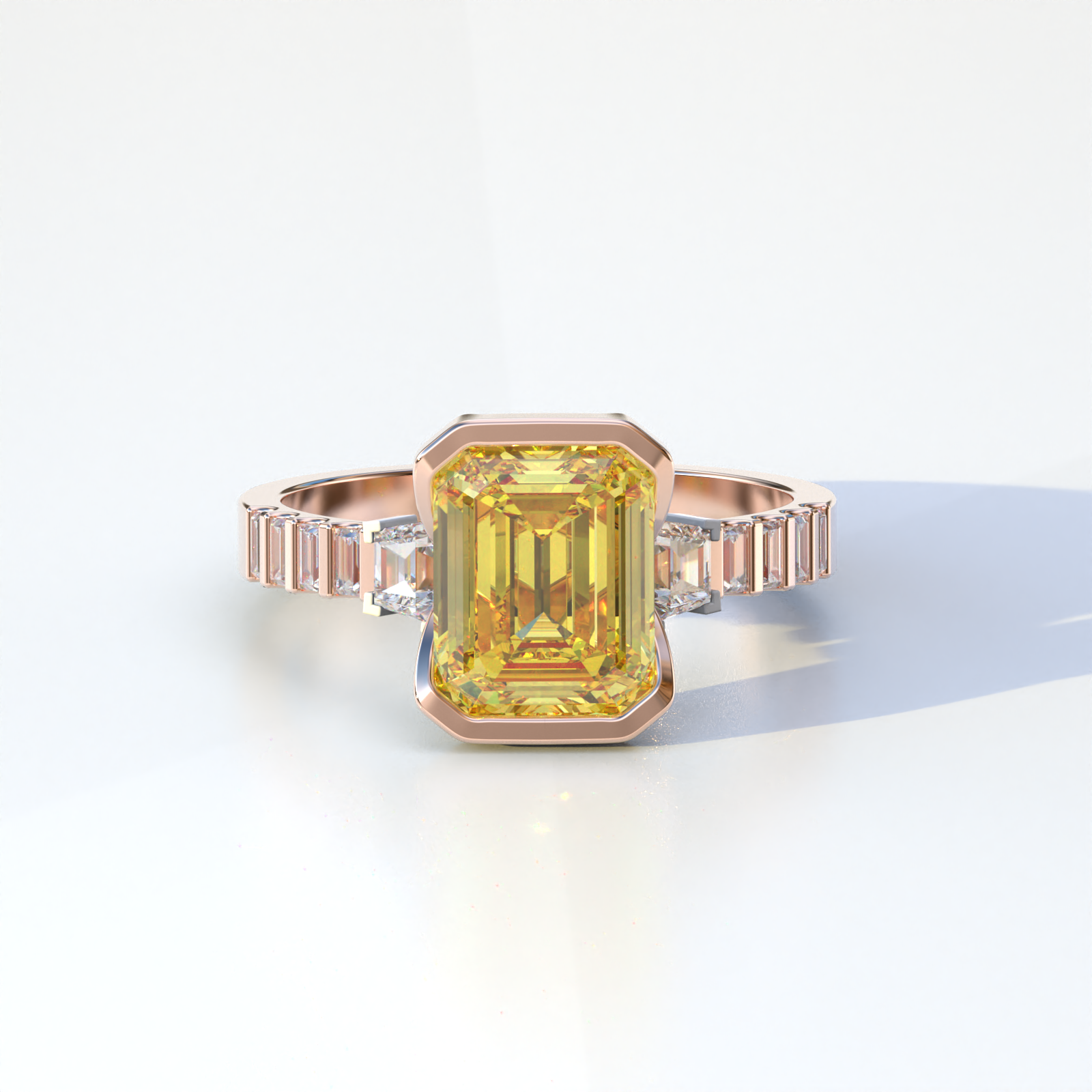 3 Carat Yellow Emerald Cut Three Stone Lab Diamond Engagement Ring - Gatsby