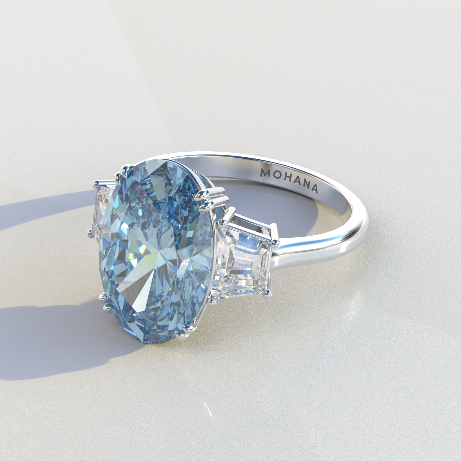 Three Stone 4 carat fancy Vivid Blue Lab Diamond Engagement Ring - Lucy