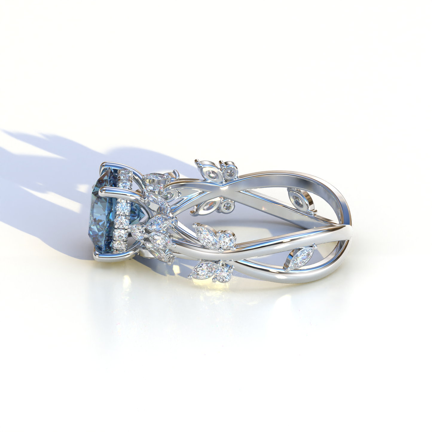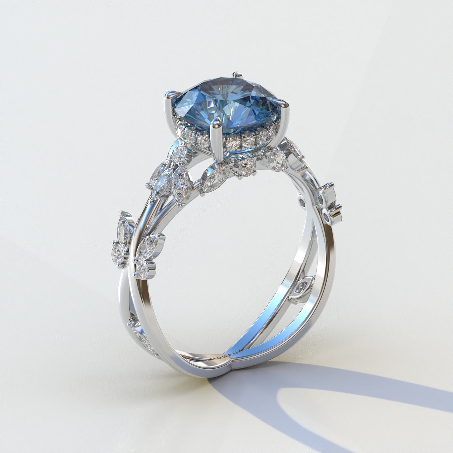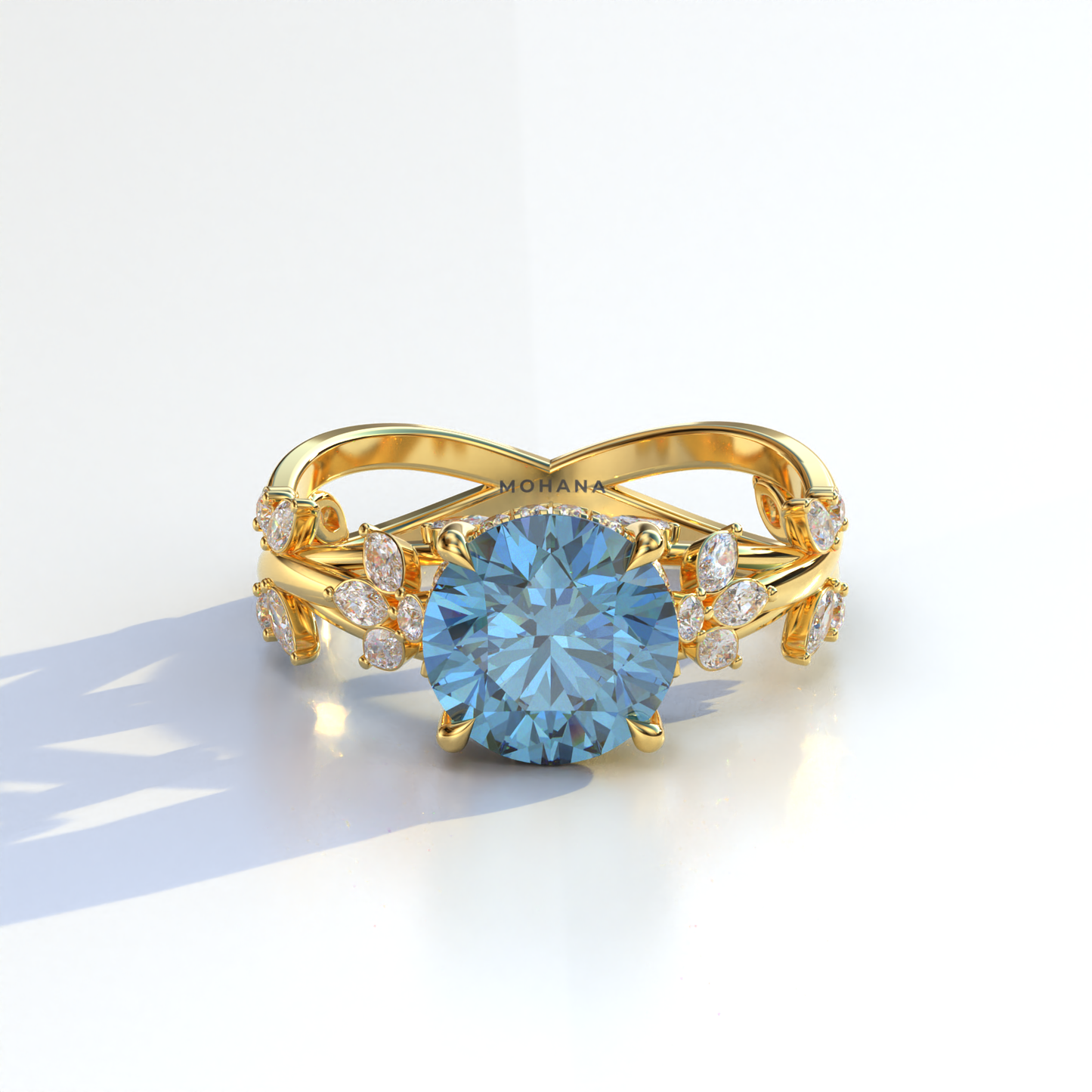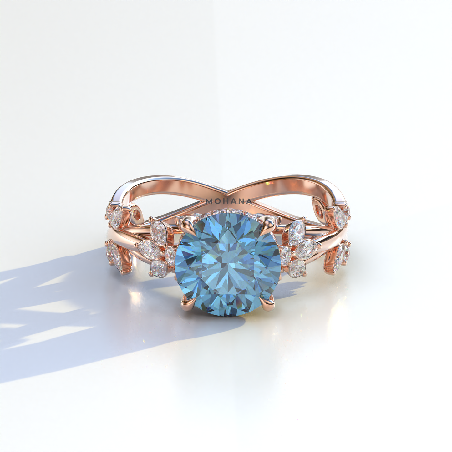 Natural Inspired 3 Carat Blue Round Cut Lab Diamond Engagement Ring - Catalina
