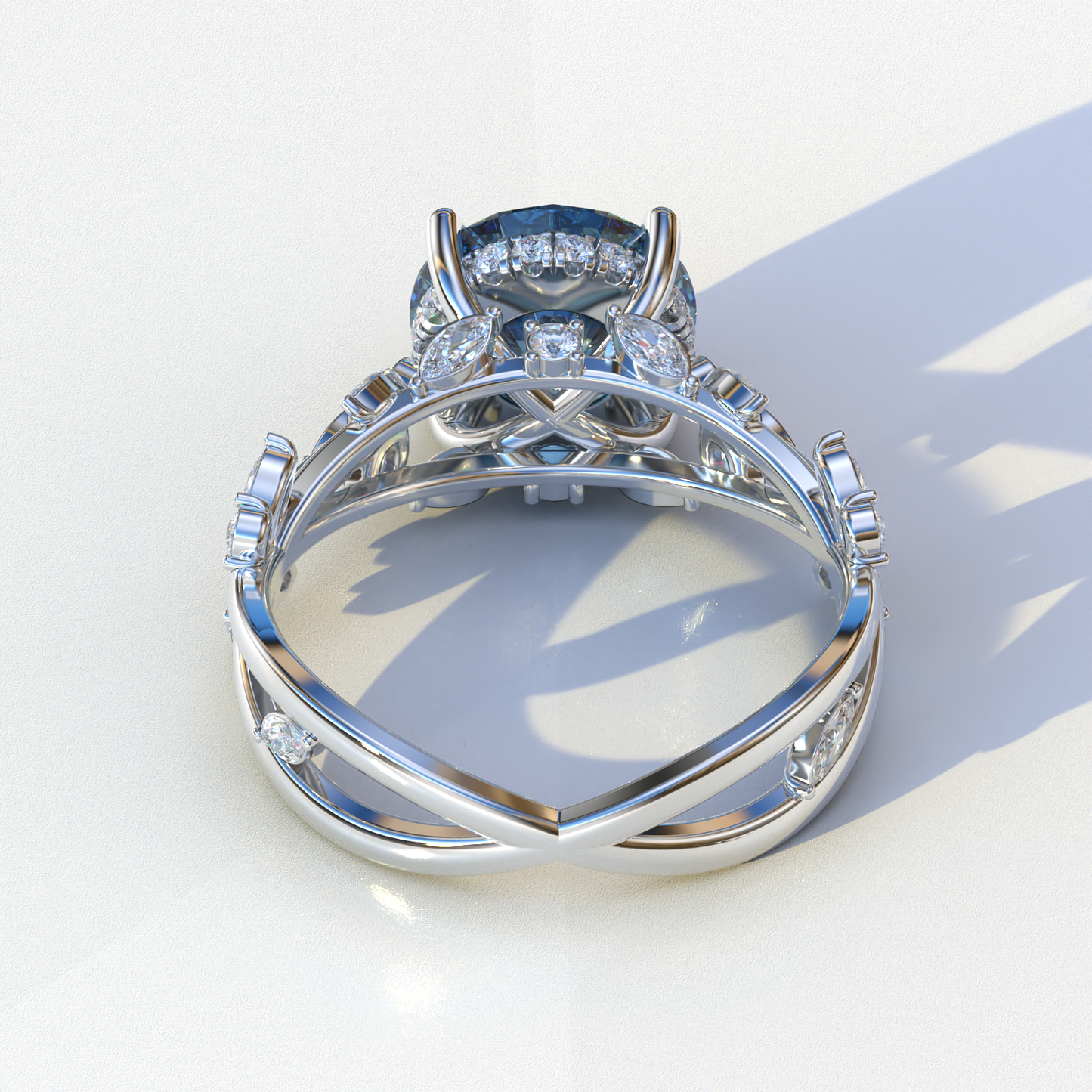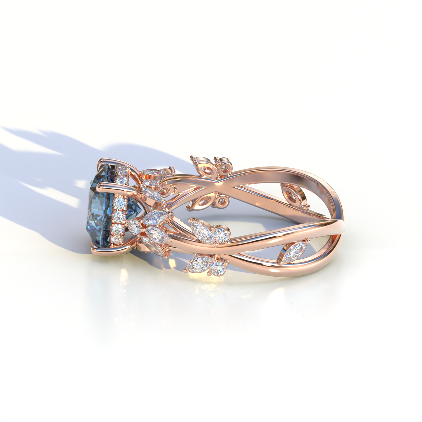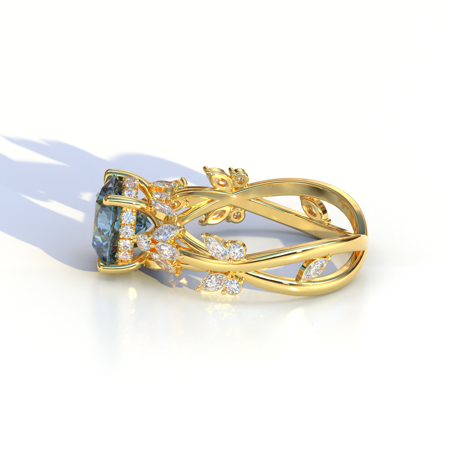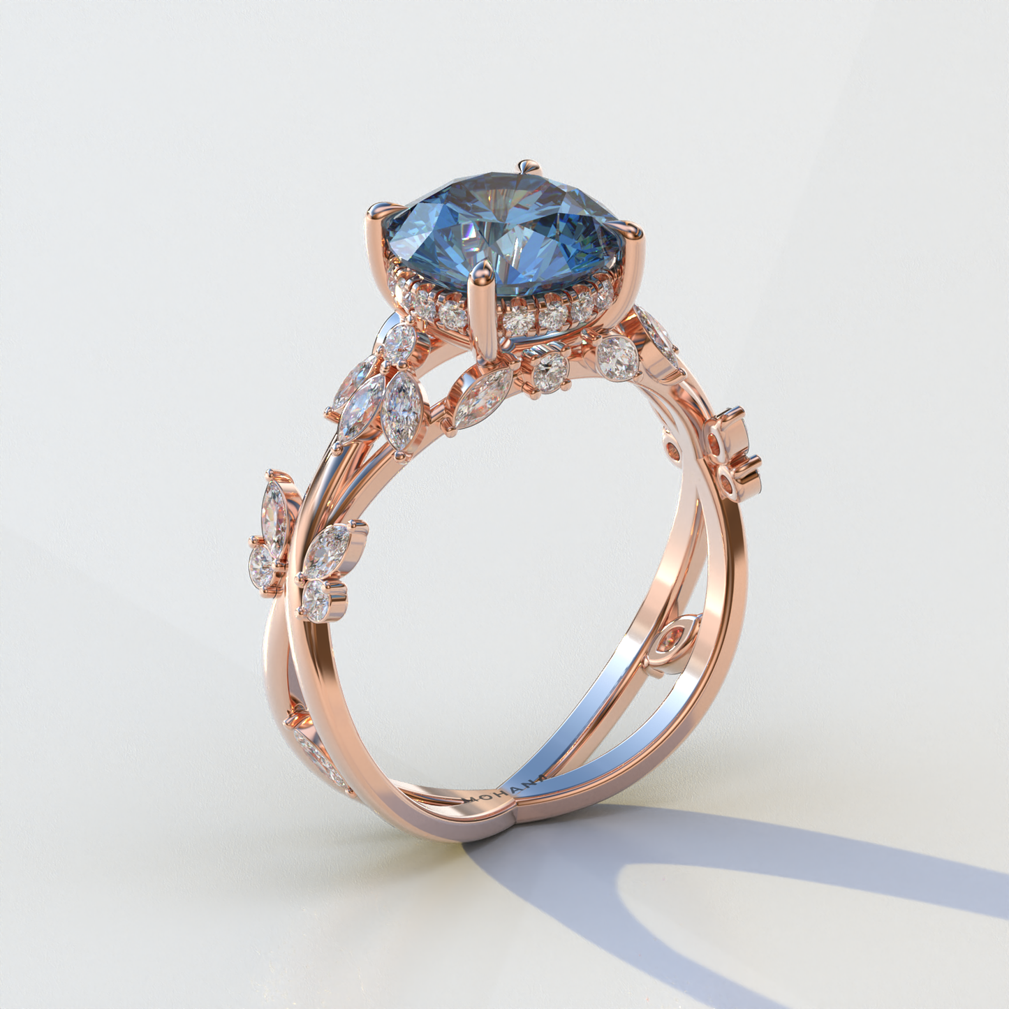 Natural Inspired 3 Carat Blue Round Cut Lab Diamond Engagement Ring - Catalina