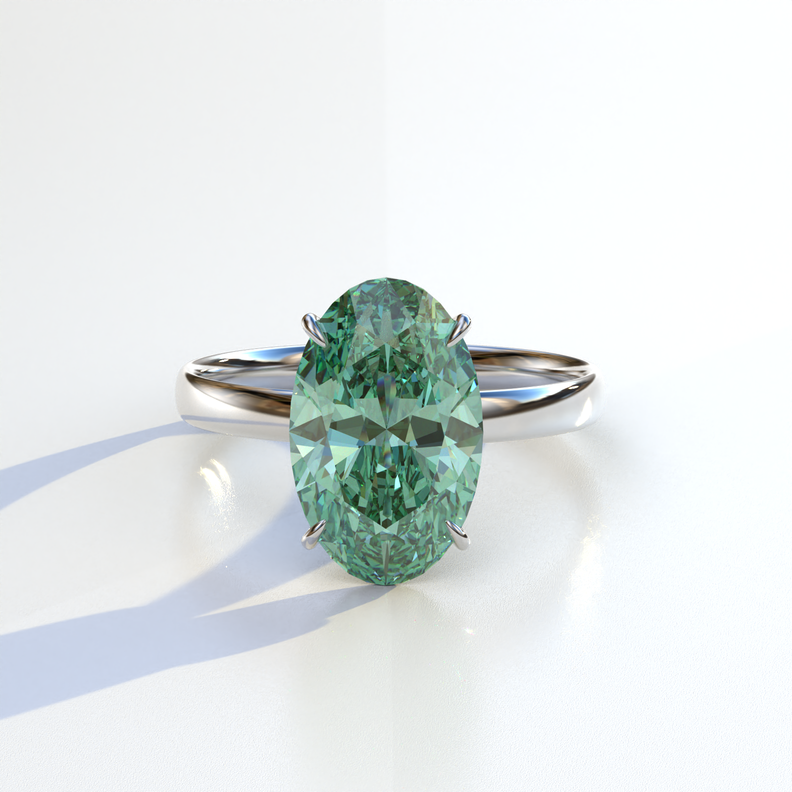 4 Carat Oval Green Lab Grown Diamond Solitaire Engagement Ring - Cadris