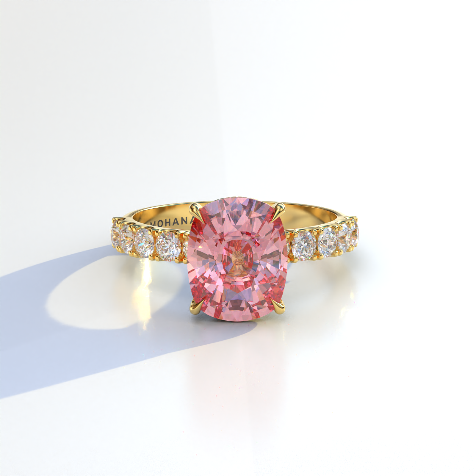 4 Carat Pink Cushion Cut Hidden Halo Eternity Lab Diamond Engagement Ring - Sandrine