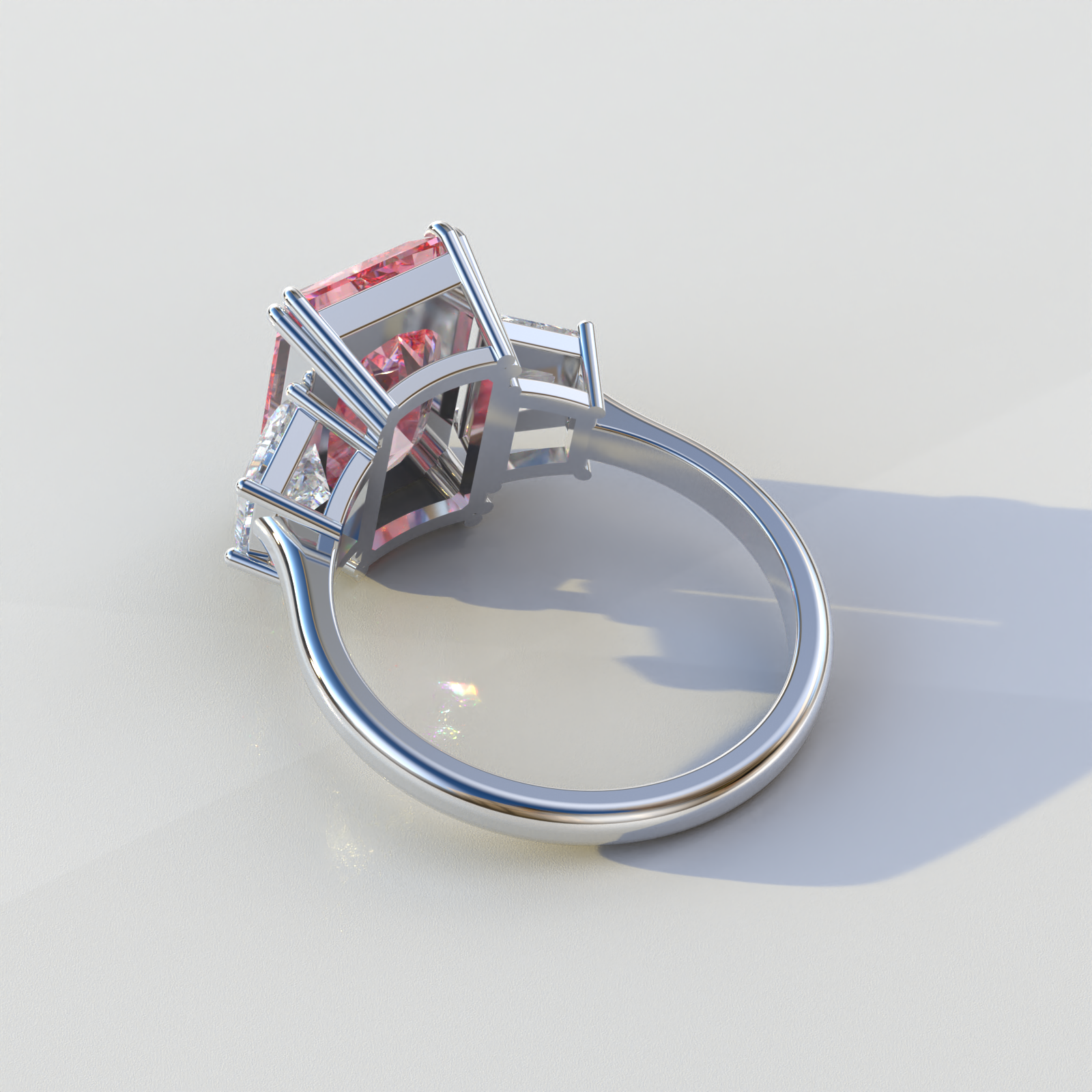 4 Carat Pink Radiant & Trapezoid Cut Lab Diamond Three Stone Engagement Ring - Embrace