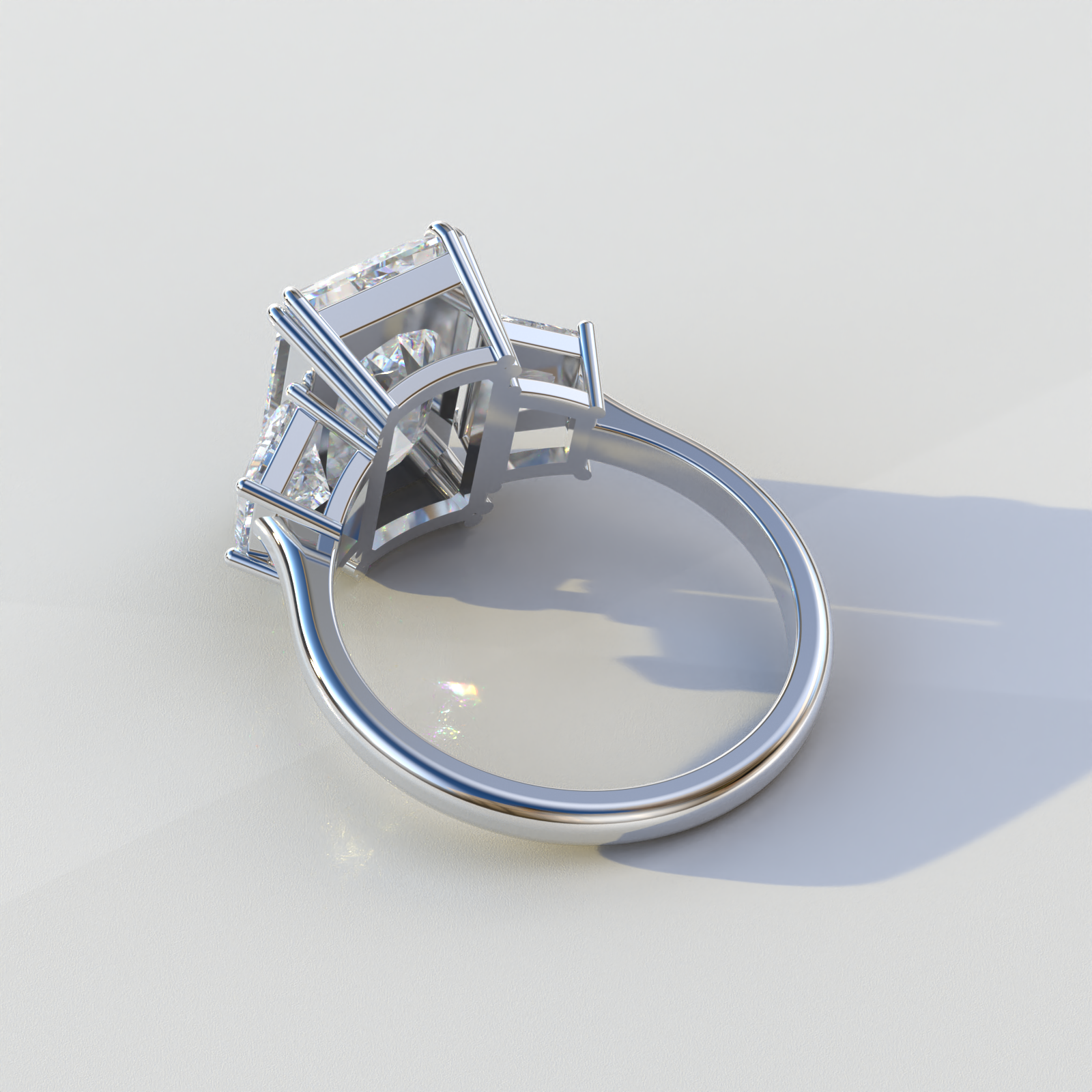 4 Carat Radiant & Trapezoid Cut Lab Diamond Three Stone Engagement Ring - Embrace