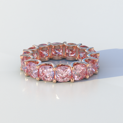 4mm Pink Cushion Lab Diamond Eternity Ring | Wedding Band - Sano