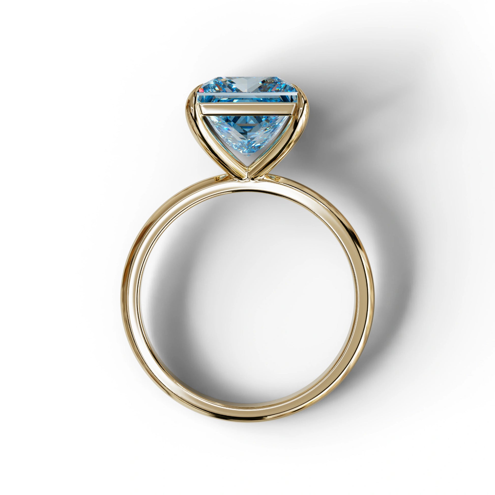 Modern fire meets ocean depth — a fancy blue princess cut lab grown diamond in a classic solitaire setting with claw prongs. Available in 2 to 5 carats, the princess cut’s brilliant-style facets shatter blue light into dazzling flashes of sapphire, cobalt, and azure that dance with every movement. Unlike step cuts that hold color in still pools, the princess cut energizes blue into a fireworks display of scattered brilliance. Blue is the rarest fancy diamond color, and the princess cut presents it with contemporary edge and maximum sparkle — a sapphire alternative that outshines the original.