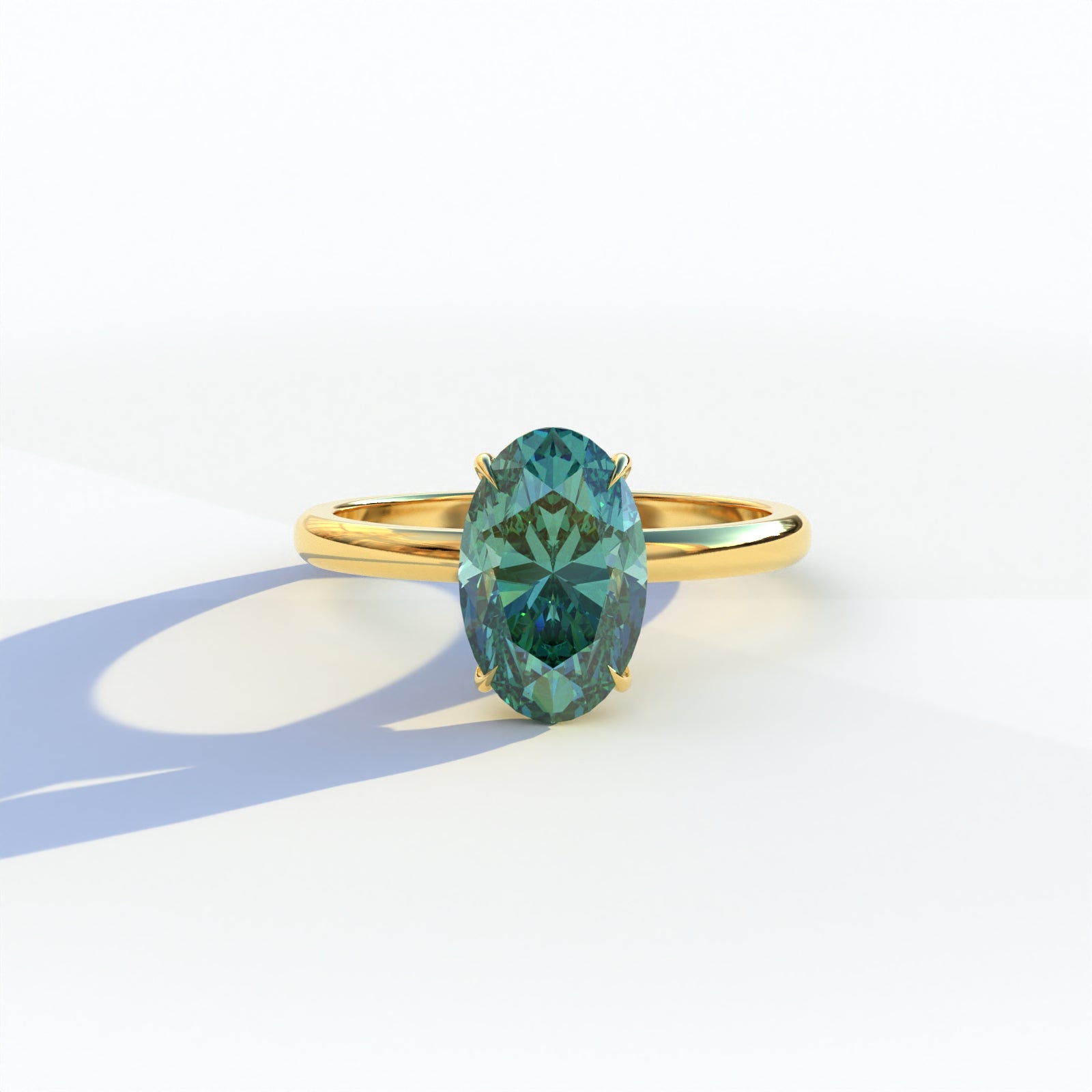 2 Carat Green Oval Cut Solitaire Lab Diamond Ring - Curiosa