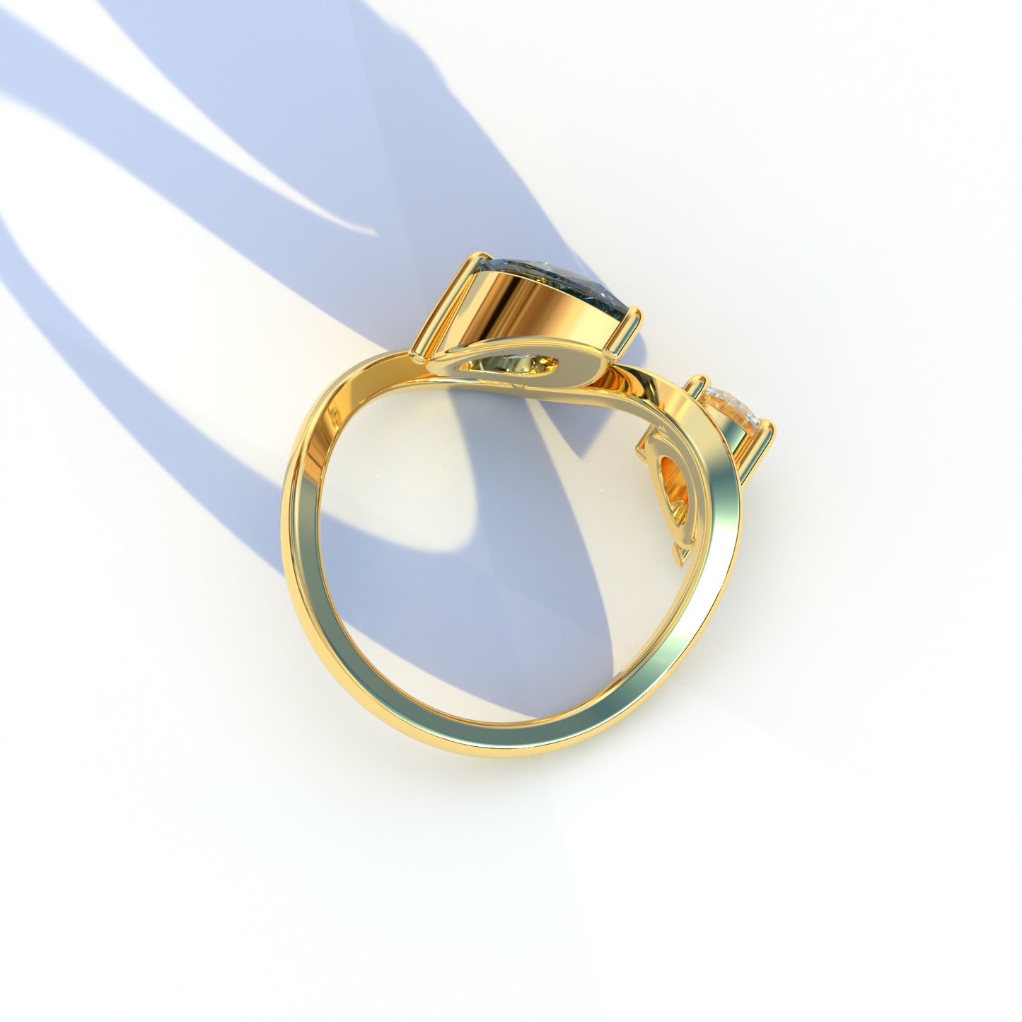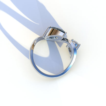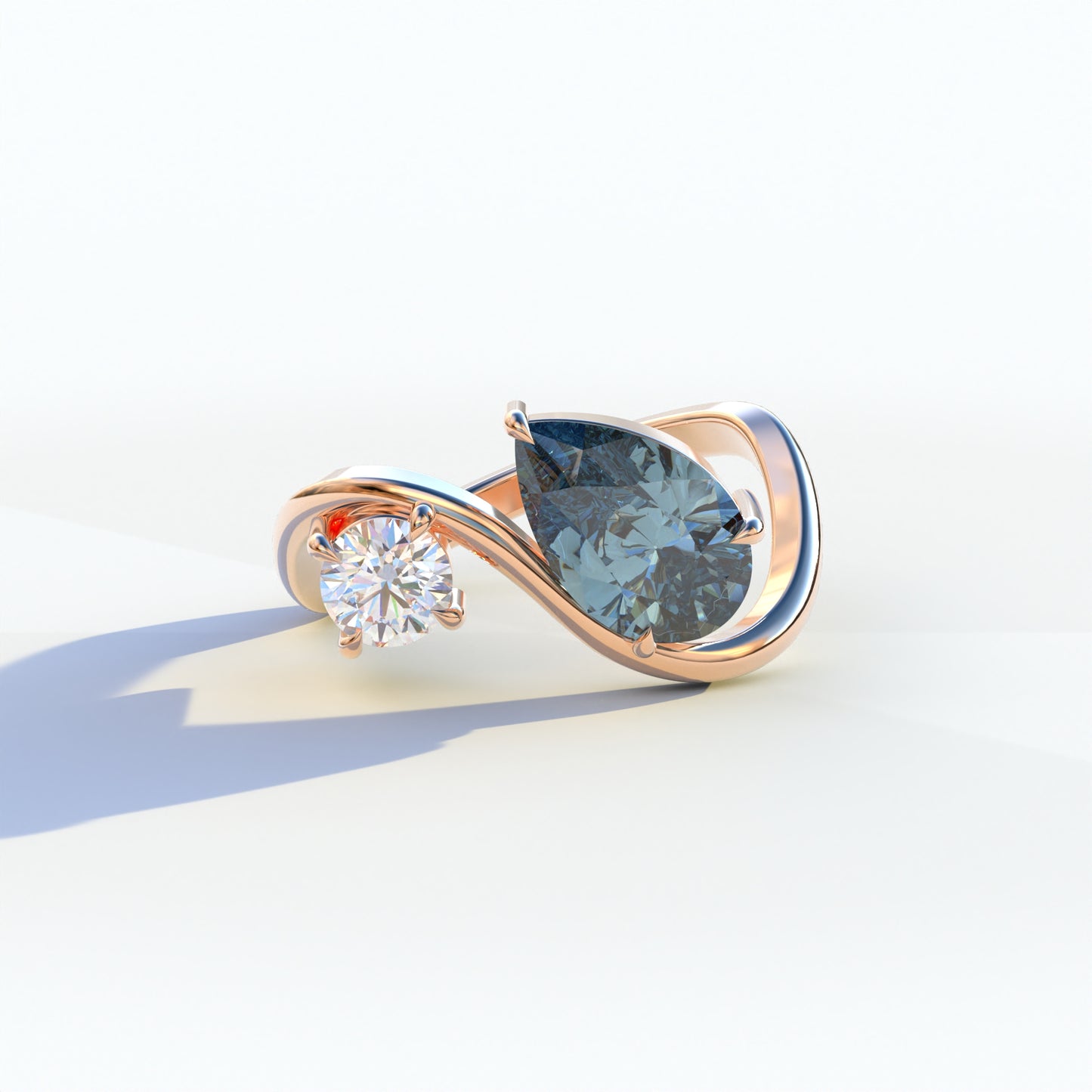 2.8 Carat Blue Pear and Round Cut Lab Diamond Engagement Ring - Toi Et Moi