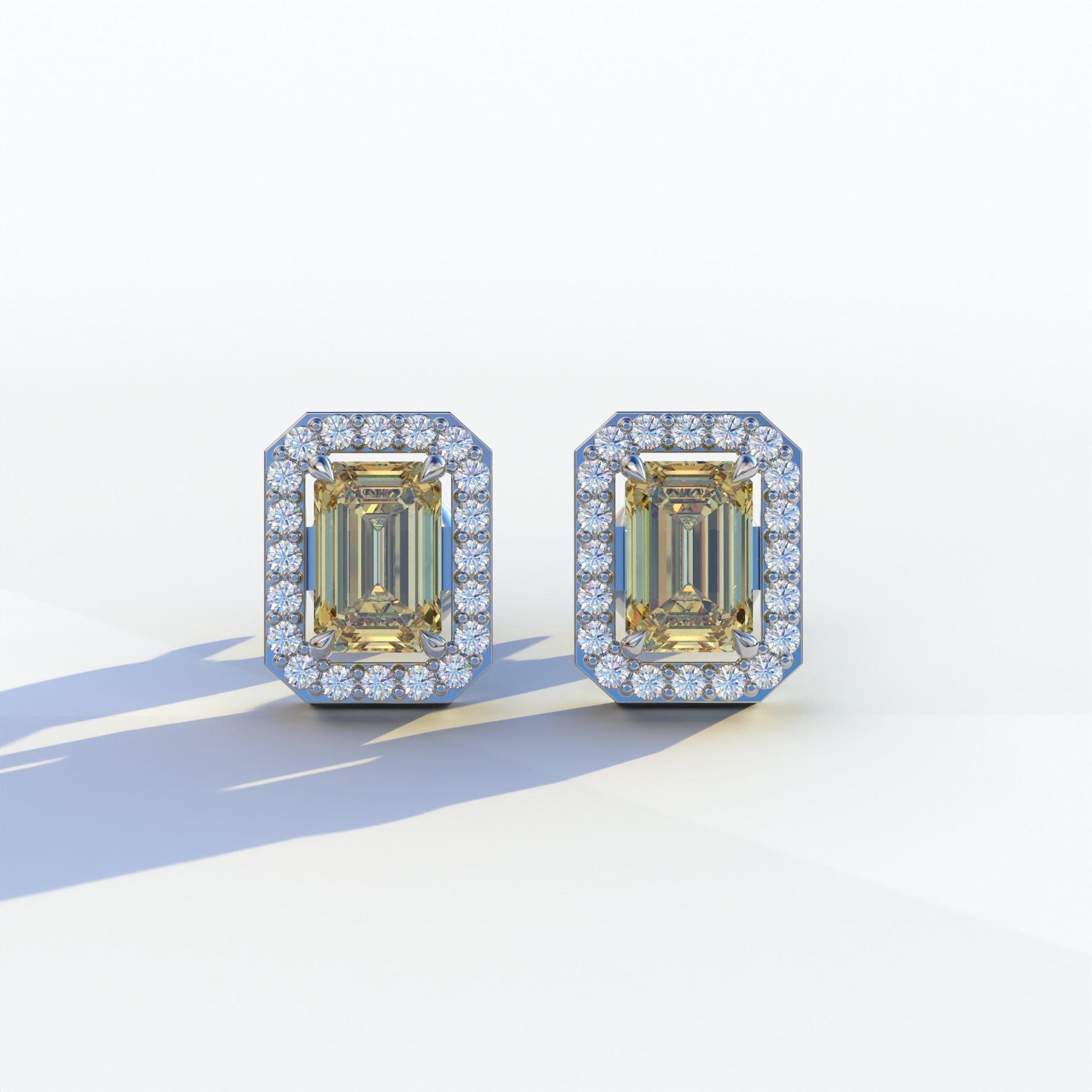 2 Carat Yellow Emerald Cut Halo Setting Lab Diamond Stud Earrings - Hailey