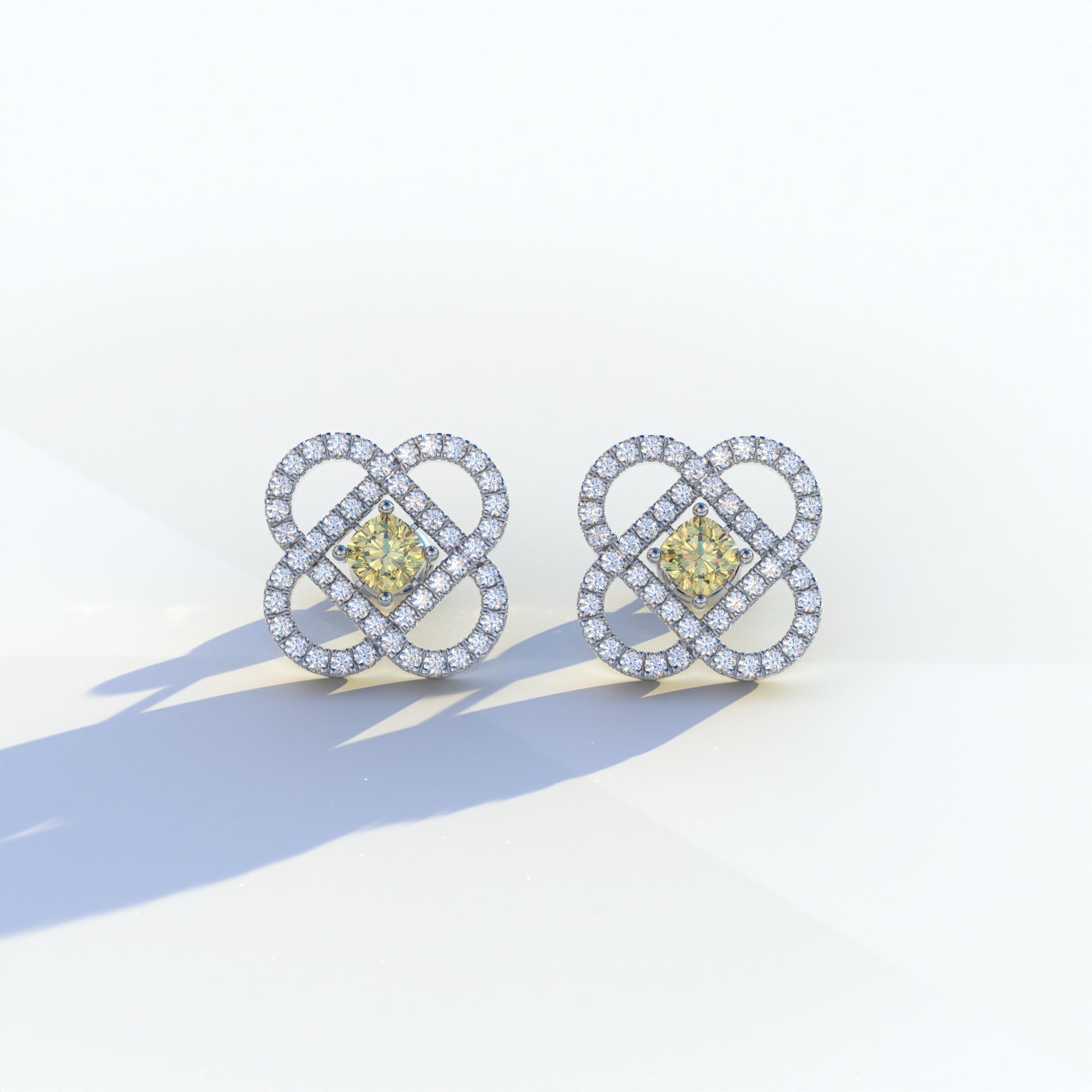 Yellow Color Round Cut Lab Diamond Stud Earrings - Hanri Daussi