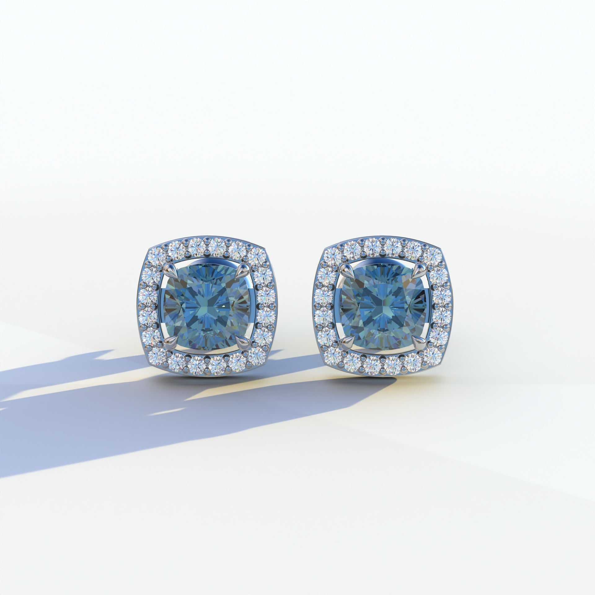 Kiara - Cushion Cut Blue Diamond Stud Earrings | Halo Earring Setting