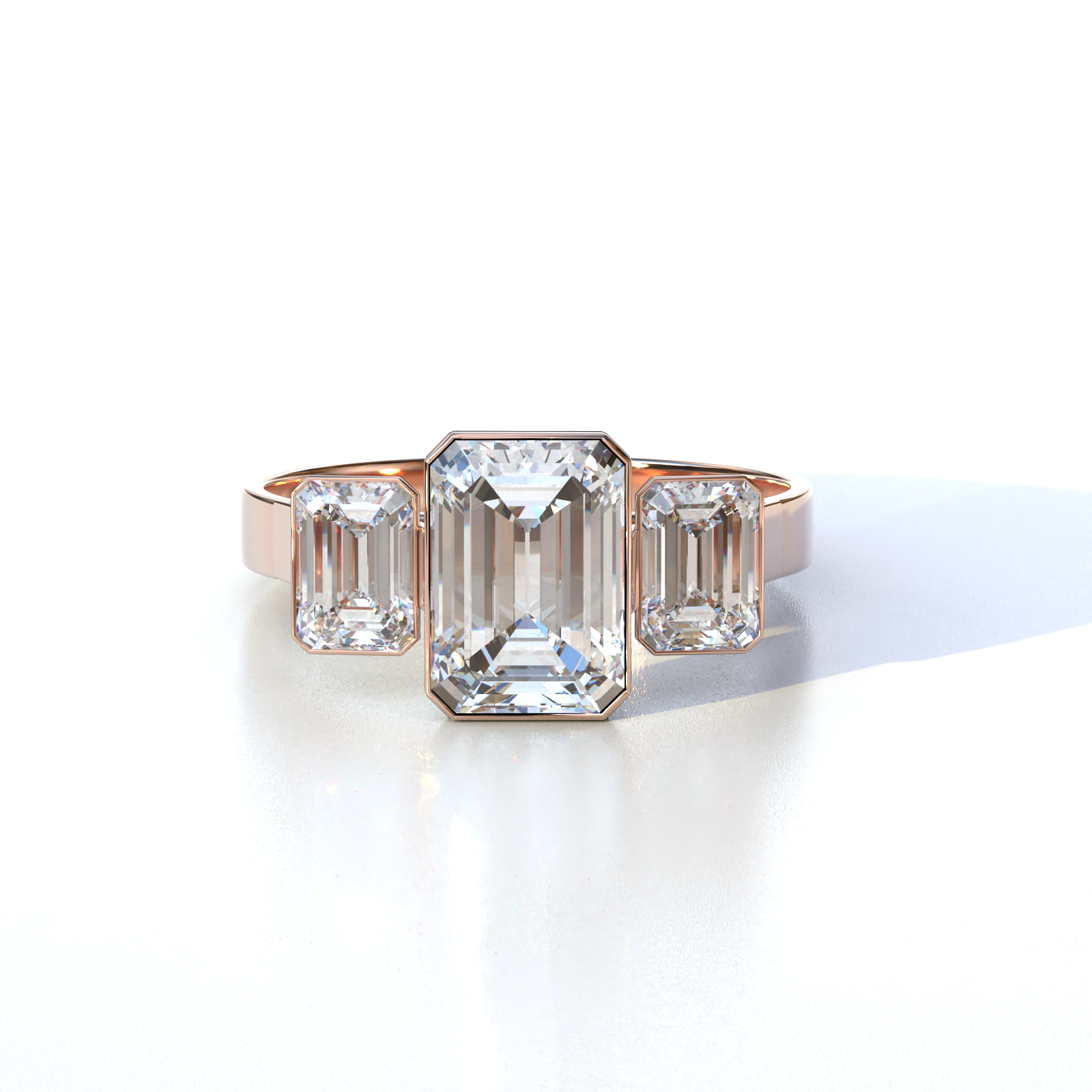 Lab Grown Diamond E VVS Emerald Cut Bezel Set 3 Stone Diamond Engagement Ring - Elaris